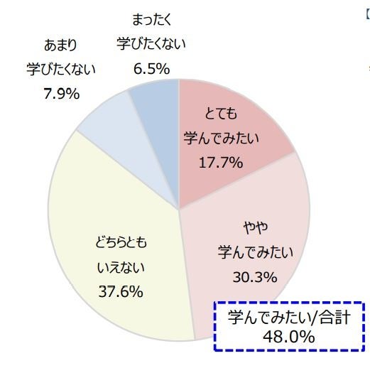 カイロプラクティックを学んでみたいかについての質問については、実に半数の方が「学んでみたい」と回答した。全健会所属のカイロプラクターは全国各地域で骨盤調整技術やセルフケアのやり方が1日で学べる家庭内健康法勉強会を開催している。また、会本部主催で初級カイロ集中事業セミナーを開催しており、誰でも気軽にカイロ