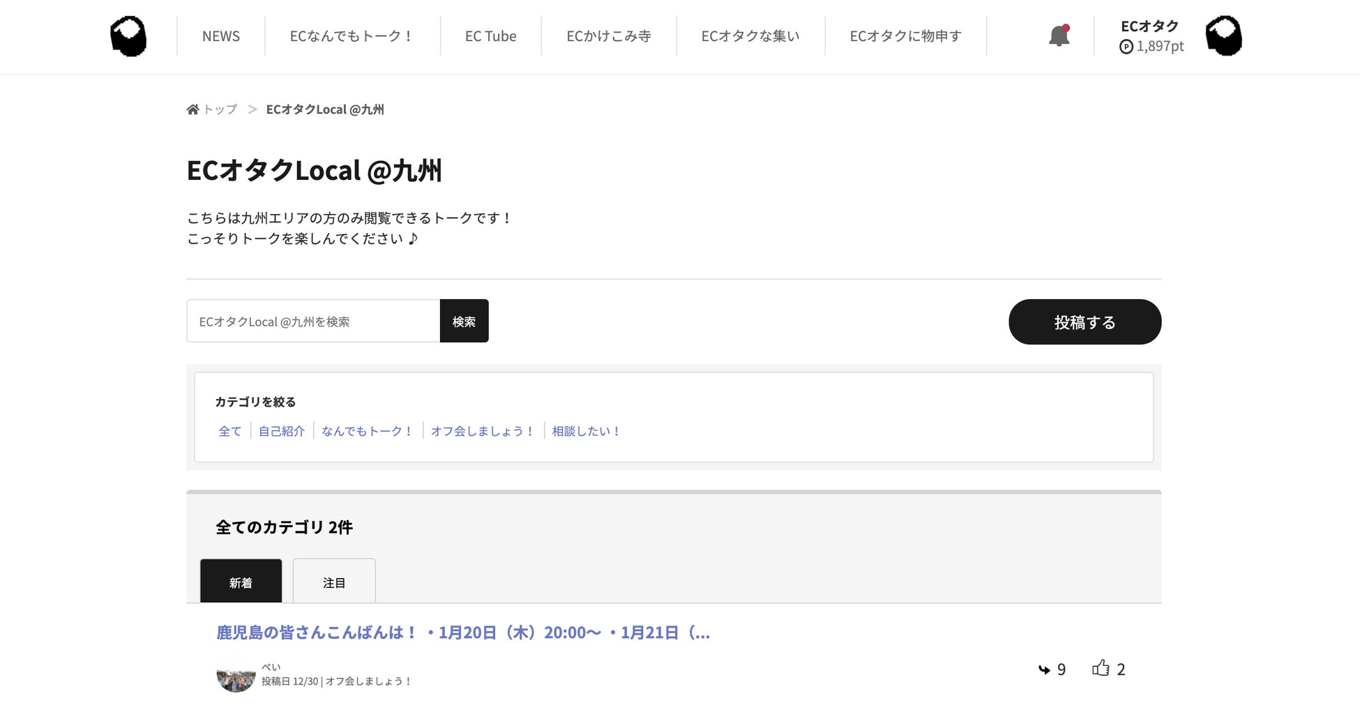 - 「ECオタクな集い | ECオタクLocal」は、メインの「ECなんでもトーク!」とは別で、登録エリアの方々のみ閲覧・投稿が可能な掲示板です。ECオタクは「気軽に相談できる」場所となる1つの形として、47都道府県にオフラインコミュニティを作ることを目指しており、この機能を通じて、身近な相談相手やEC仲間に出会う機会の創出を実現します。