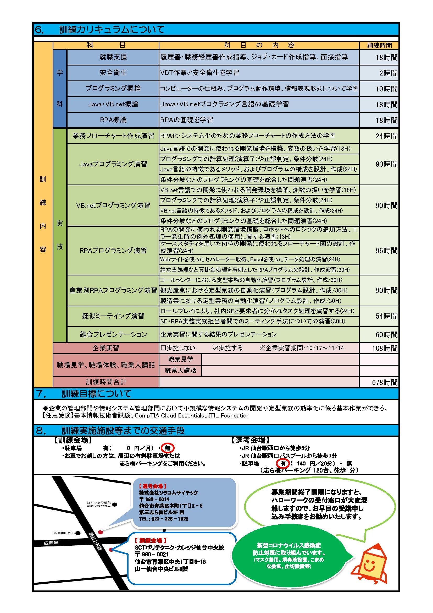 併せて6月にさらに規模を拡大し、Webシステム開発を中心とした専門分野に特化した求職者支援訓練の2コース「RPA実践プログラミング科」「Javaプログラミング・Webセキュリティ科」も受講者募集中です。