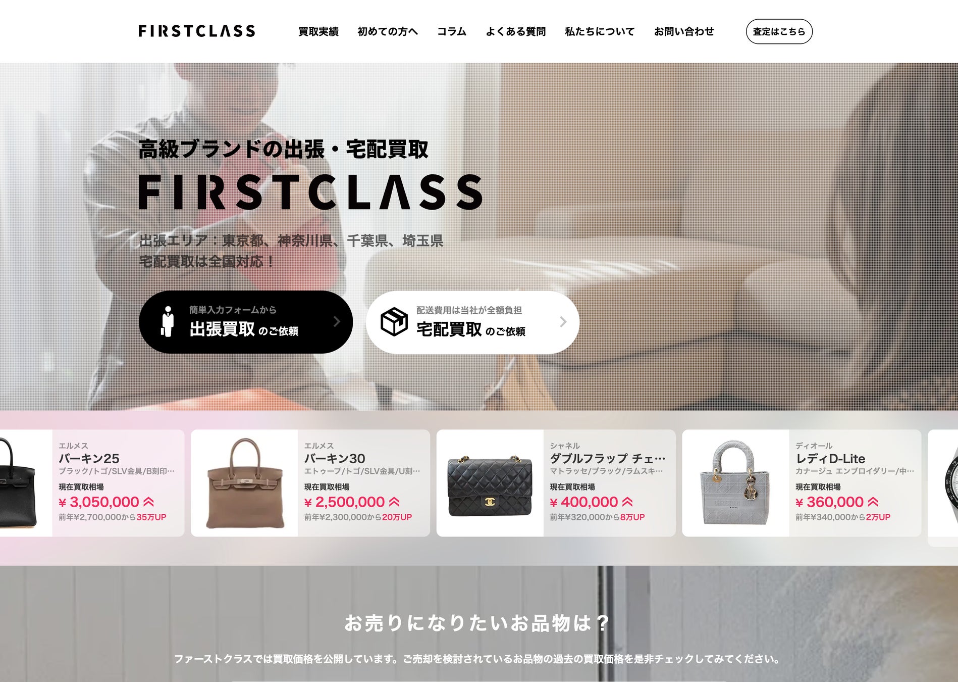 当社が運営する買取サービス「FIRSTCLASS-ファーストクラス-」は信頼感や透明性というものに重きを置き、初めて買取サービスを利用する方にも満足していただくことをテーマとしています。