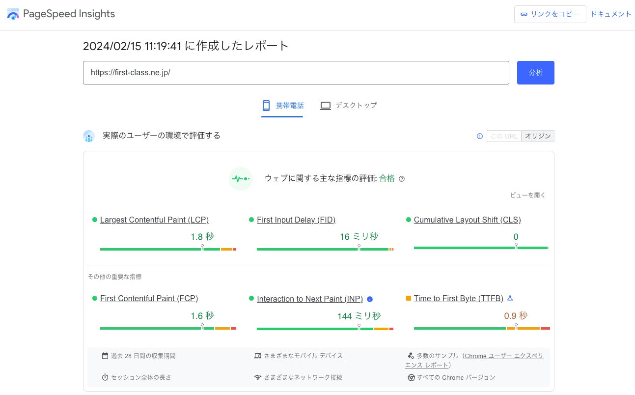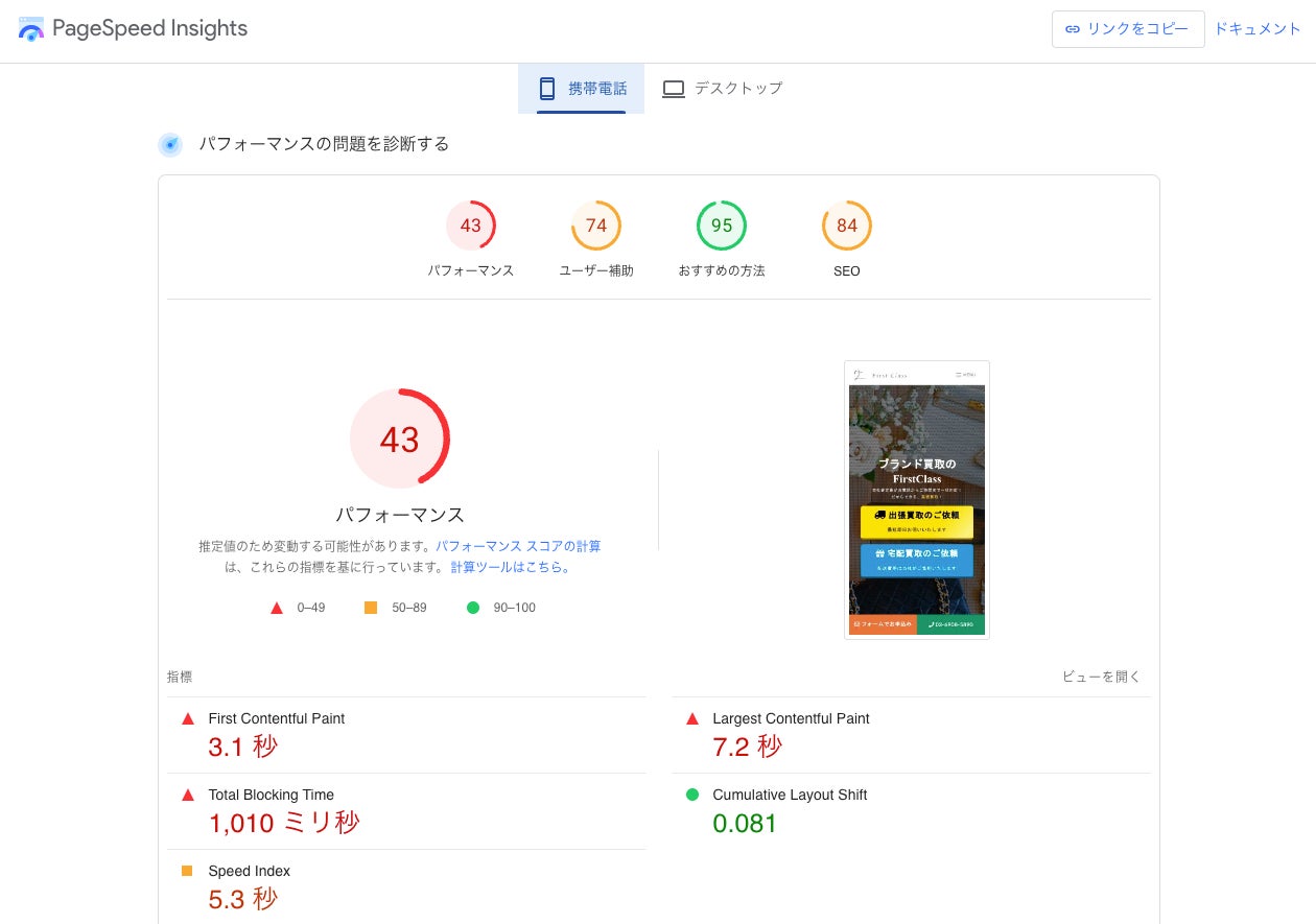 ※Google PageSpeed Insightsのデータに基づき速度改善を計りました。