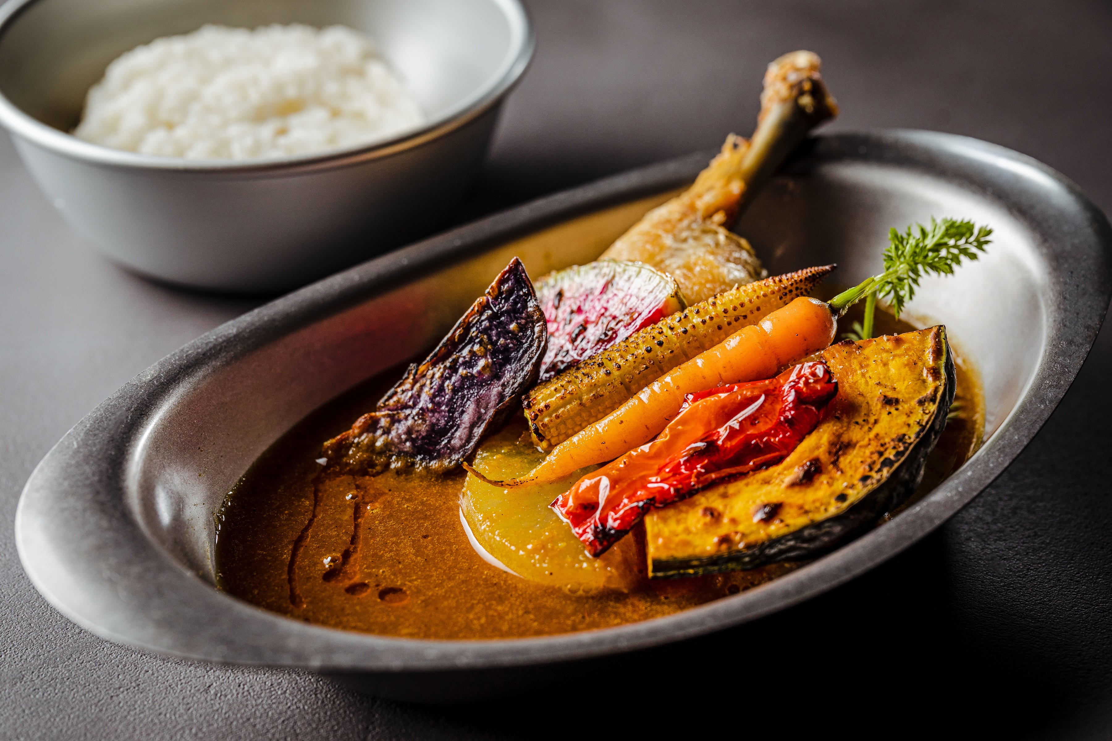 下北沢ポニピリカの濃厚海老のスープカレー/和牛のフォー/九条ネギと白姫えびのアジアンカルパッチョ