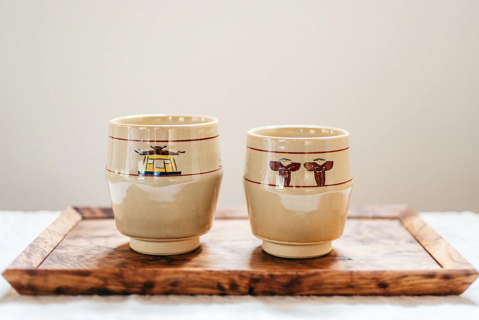 赤膚焼は乳白色の柔らかい風合いと奈良絵文様が特徴で、湯飲みや花瓶、壺、皿、などさまざまなものが作られています。奈良ならではの、その風雅な味わいが多くの人に愛されています。