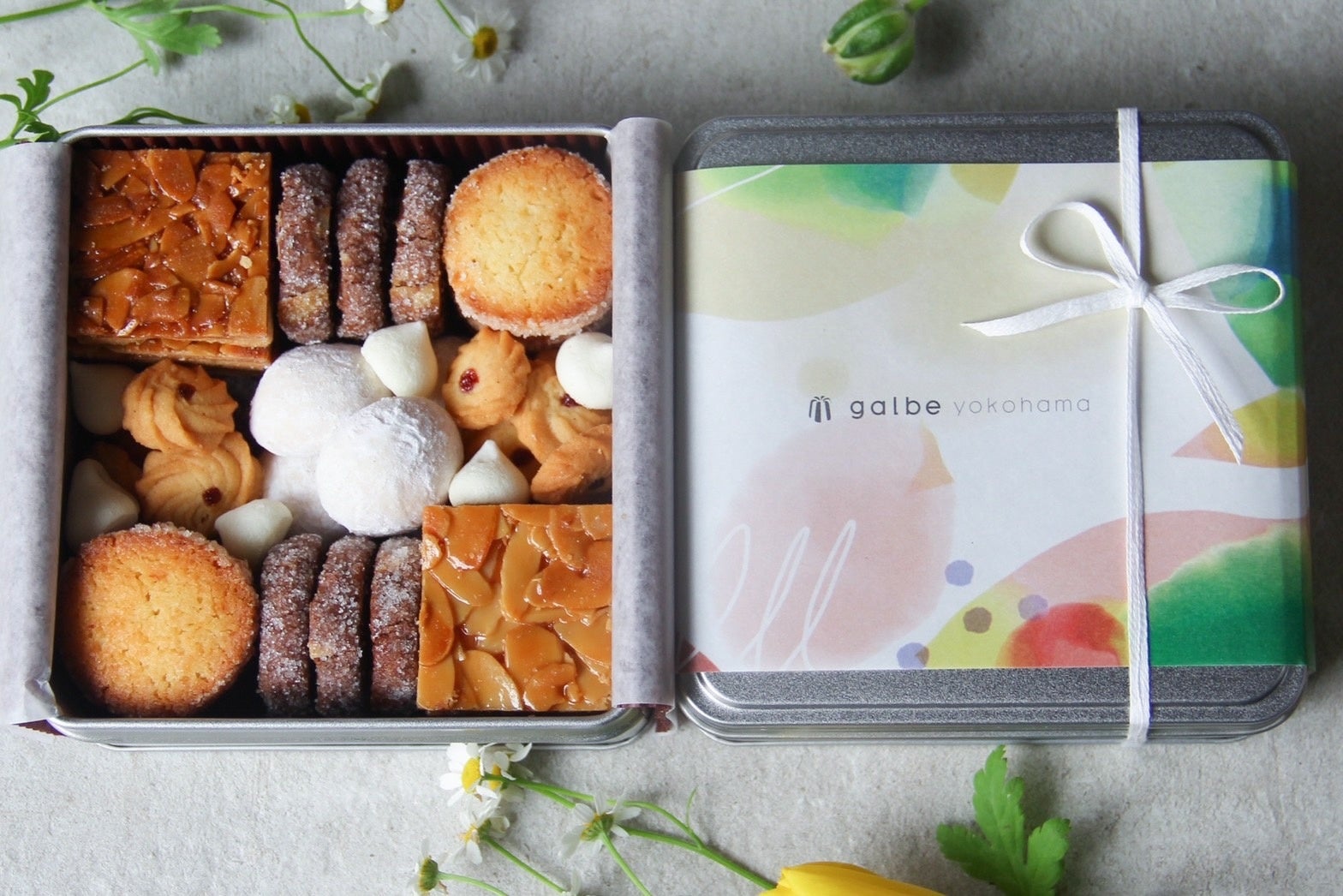 優しい甘さに仕上げたこだわりの手作りクッキー5種類とアーモンドフロランタンを詰め合わせました。蜂蜜を使用しており食べやすい食感のフロランタン、香りの良いタヒチ産のバニラビーンズを使用したバニラクッキー、サクサクほろほろの食感が美味しいディアマンクッキーなど、ティータイムにおすすめのクッキーが詰まったgalbeのフールセックです。