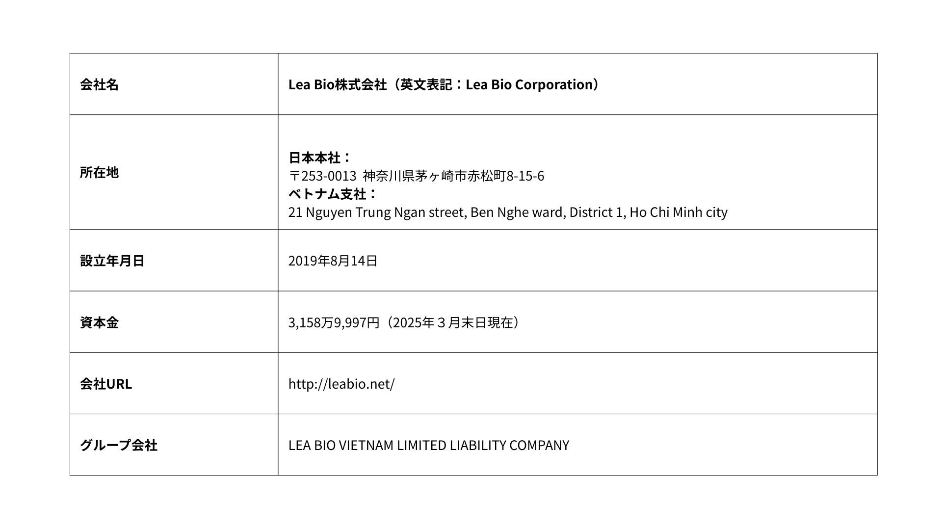 Lea Bio株式会社(神奈川県茅ヶ崎市、代表取締役:浜中 康晴、以下、「当社」)は、2025年4月23日、臨時株主総会において、MRT株式会社(本社:東京都渋谷区、以下、「MRT」)を割当予定先とする第三者割当による募集株式の発行を実施し、国内またはベトナム社会主義共和国(以下、「ベトナム国」)における医療・ヘルスケア関連事業によるビジネス強化または拡大を目的とした資本提携及び業務提携に関する基本合意書(以下「本契約」)を締結しましたので、以下のとおりお知らせいたします。