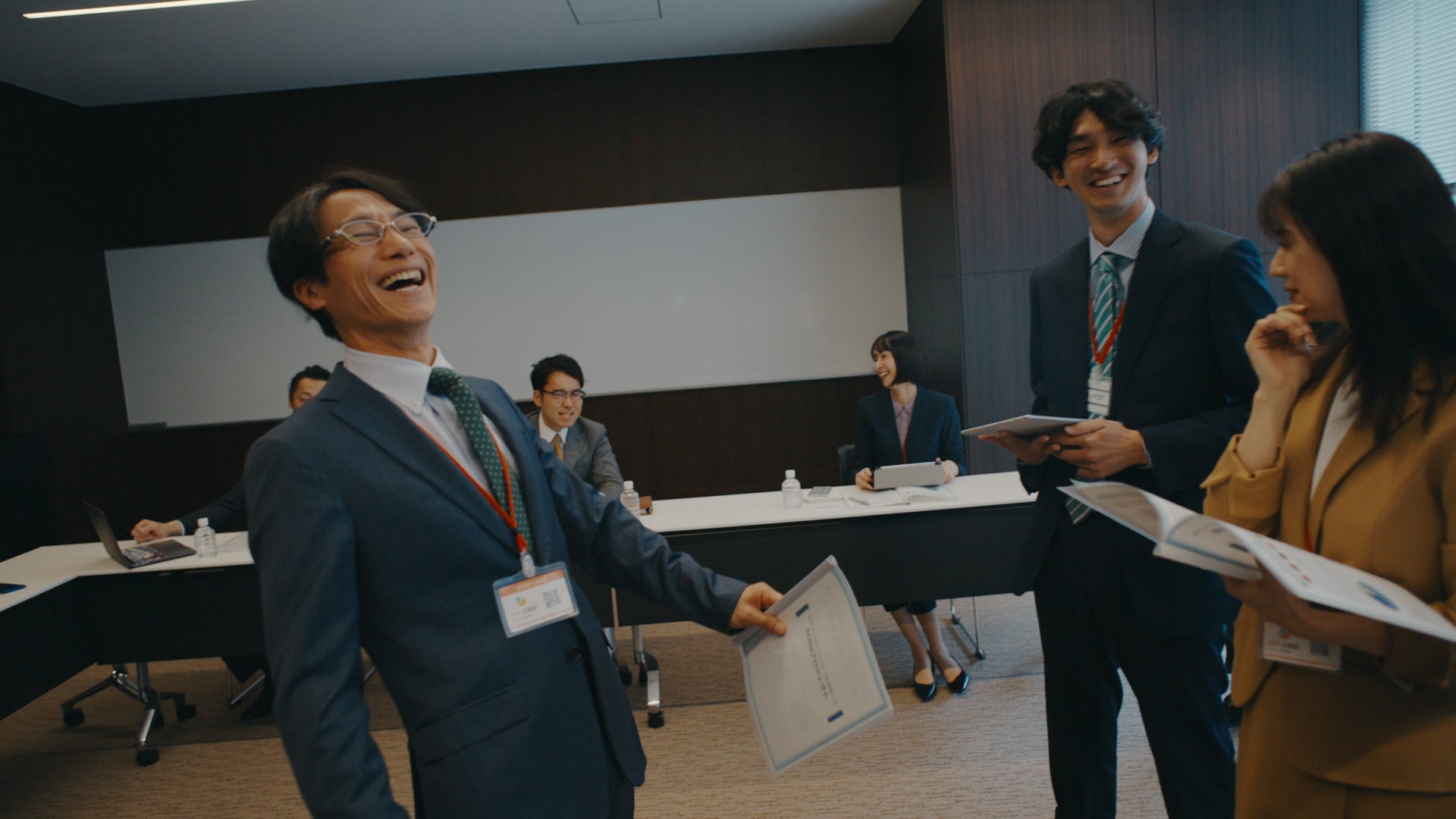 インタビューでは本テーマソングについて「朝聞いてほしい!」とおすすめしていた賀来さん。見事に力強い歌声で歌い上げていただき、ビジネスパーソンの「会う」を支え、働く人を応援する本テーマソングにぴったりの映像となりました。