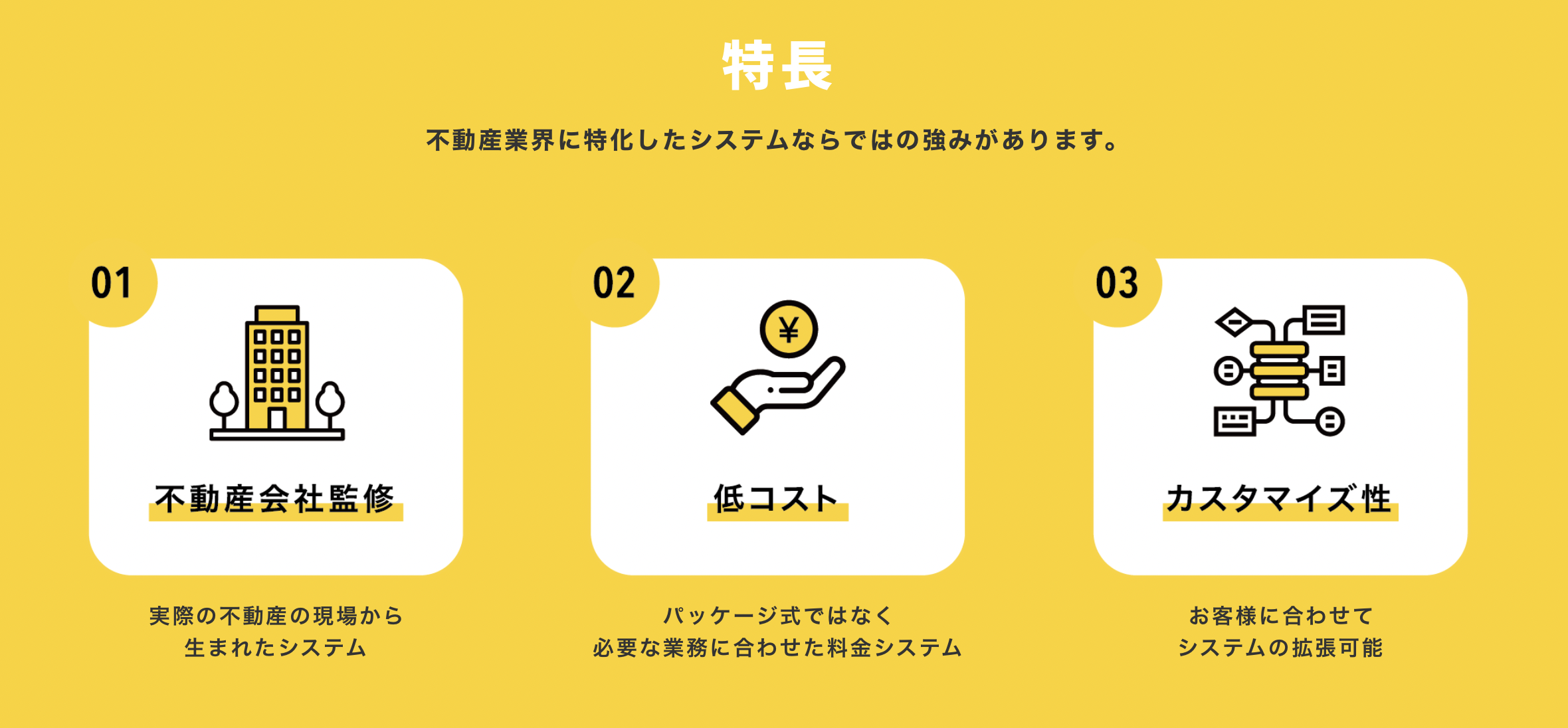 必要なデータを1つのシステムで管理し、コストと機能のバランスに納得できるシステムを提供することで、不動産業界に好循環を生み出していくことを目指しています。