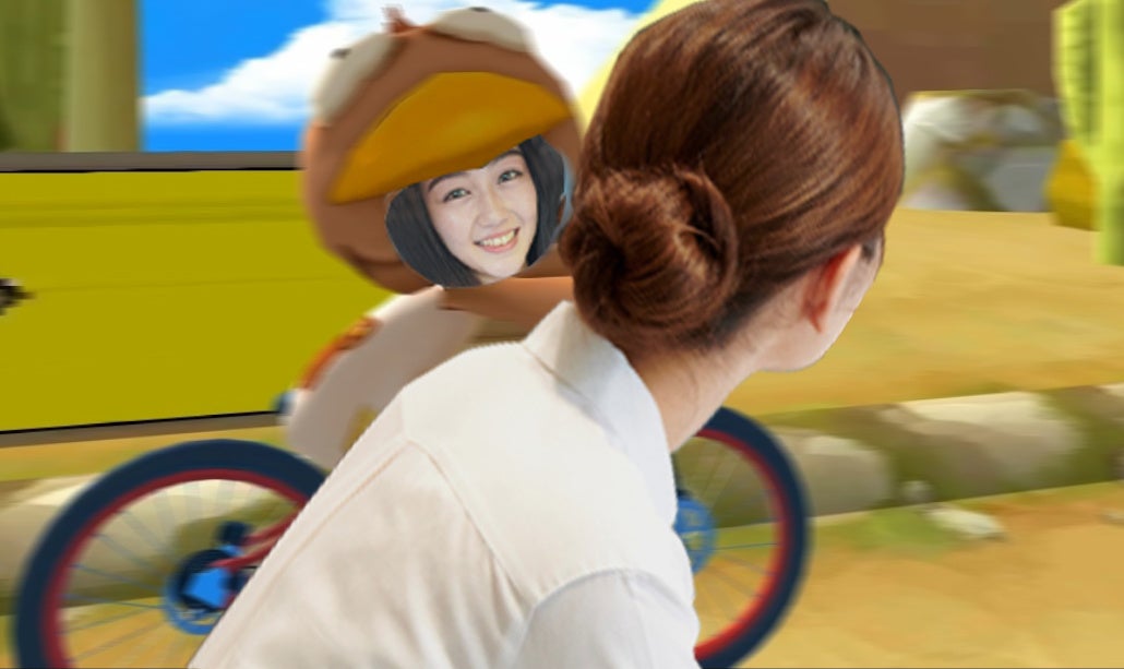 現実のエアロバイクを漕ぐ速度とアバターの自転車を漕ぐ速度がシンクロ