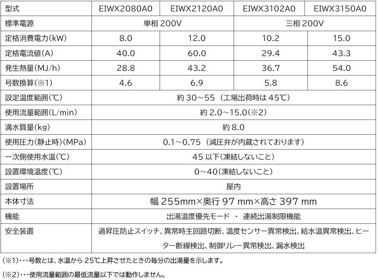 | EIWX2080A0 | 単相200V8.0kW | 40.0A | 260,000円 |