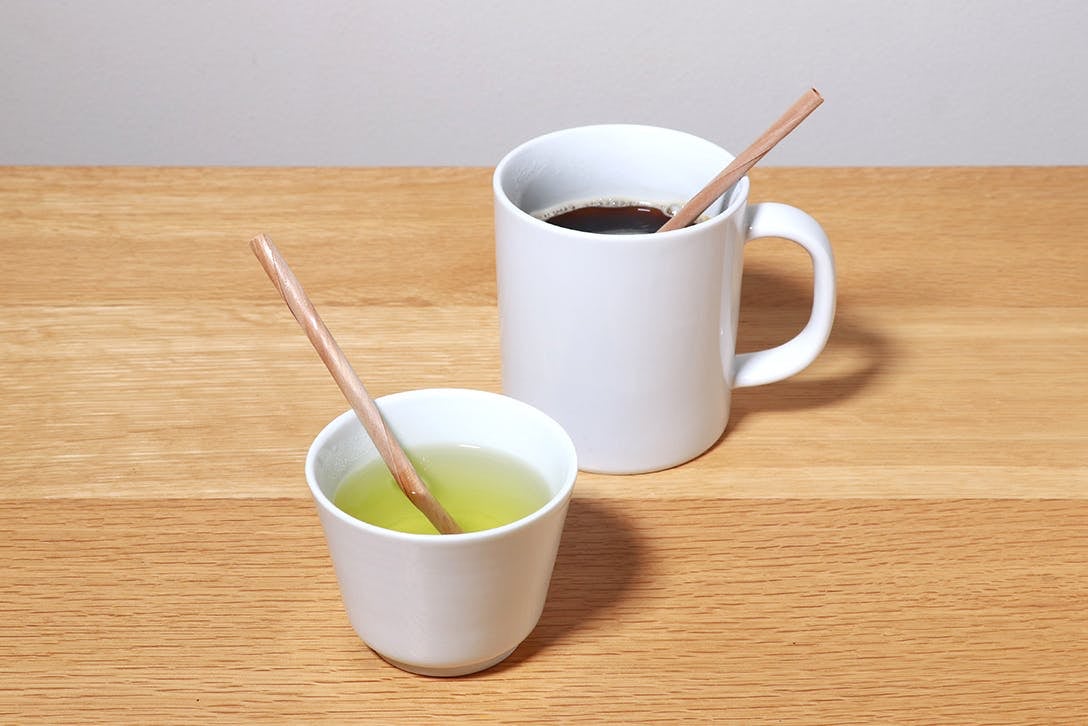 佐賀のお茶でも杉のマドラーをお試しください。