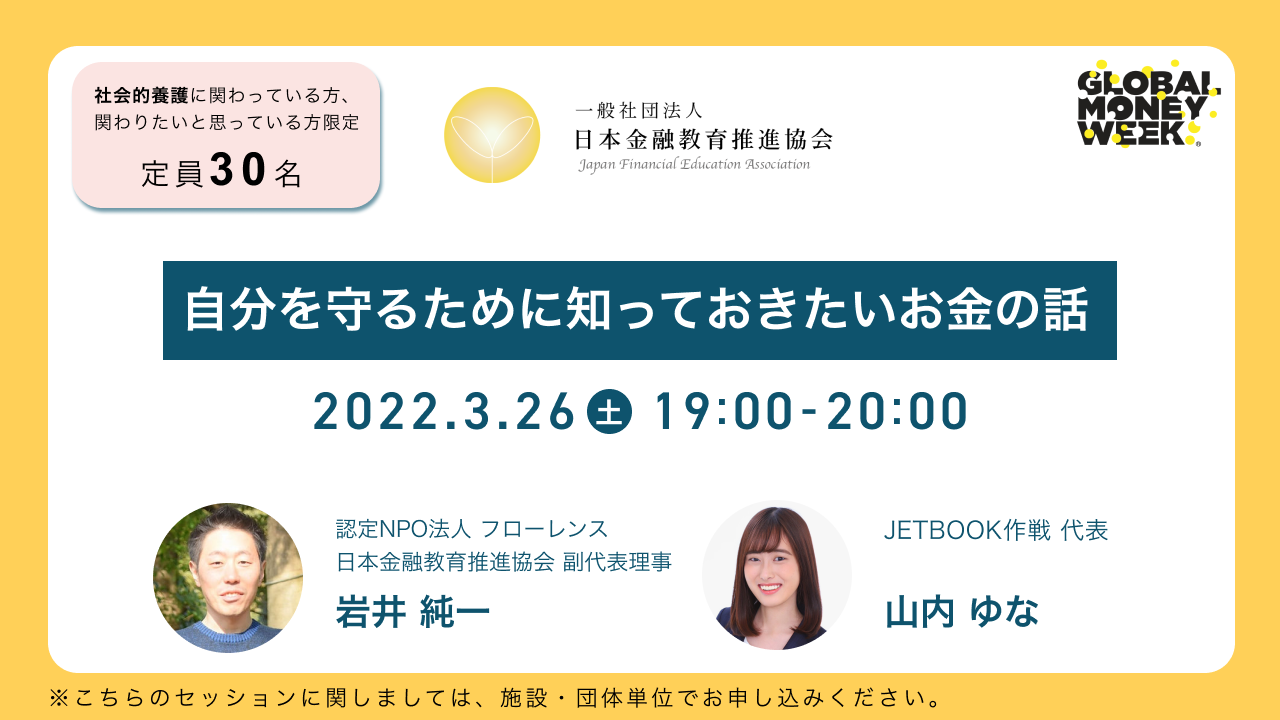 グローバルマネーウィーク初日のイベントは、日本金融教育推進協会のメンバーによるトークセッションをお送りします。