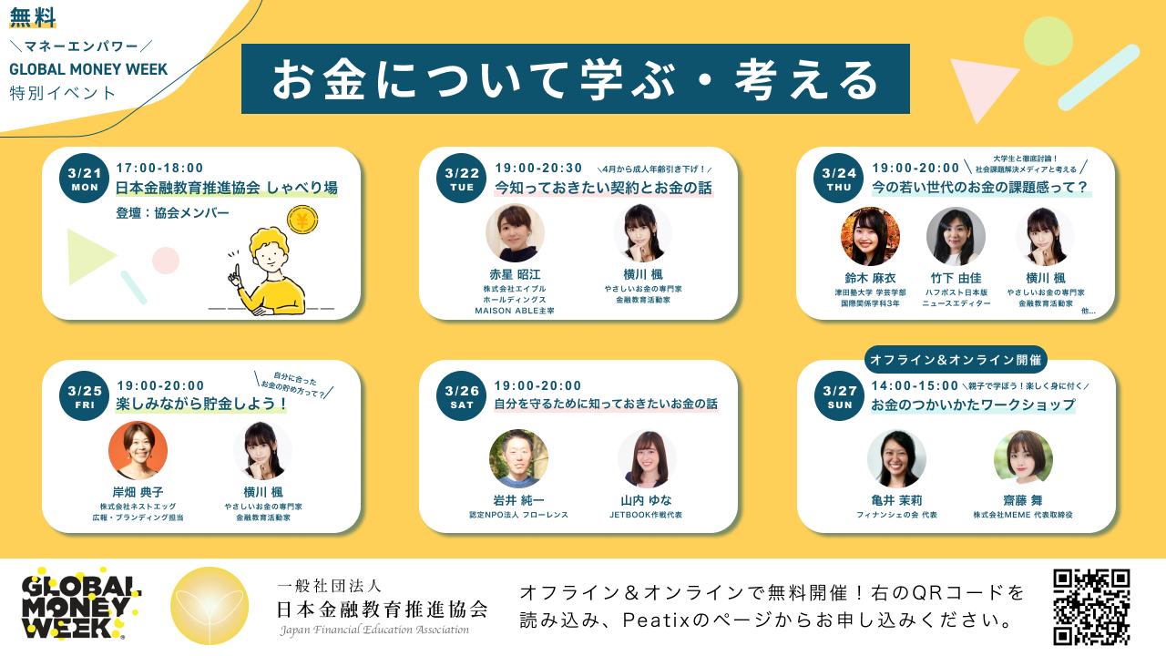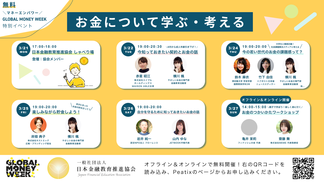 3/21〜3/27はグローバルマネーウィーク:お金について学ぶ、考える多様な金融教育イベントを開催