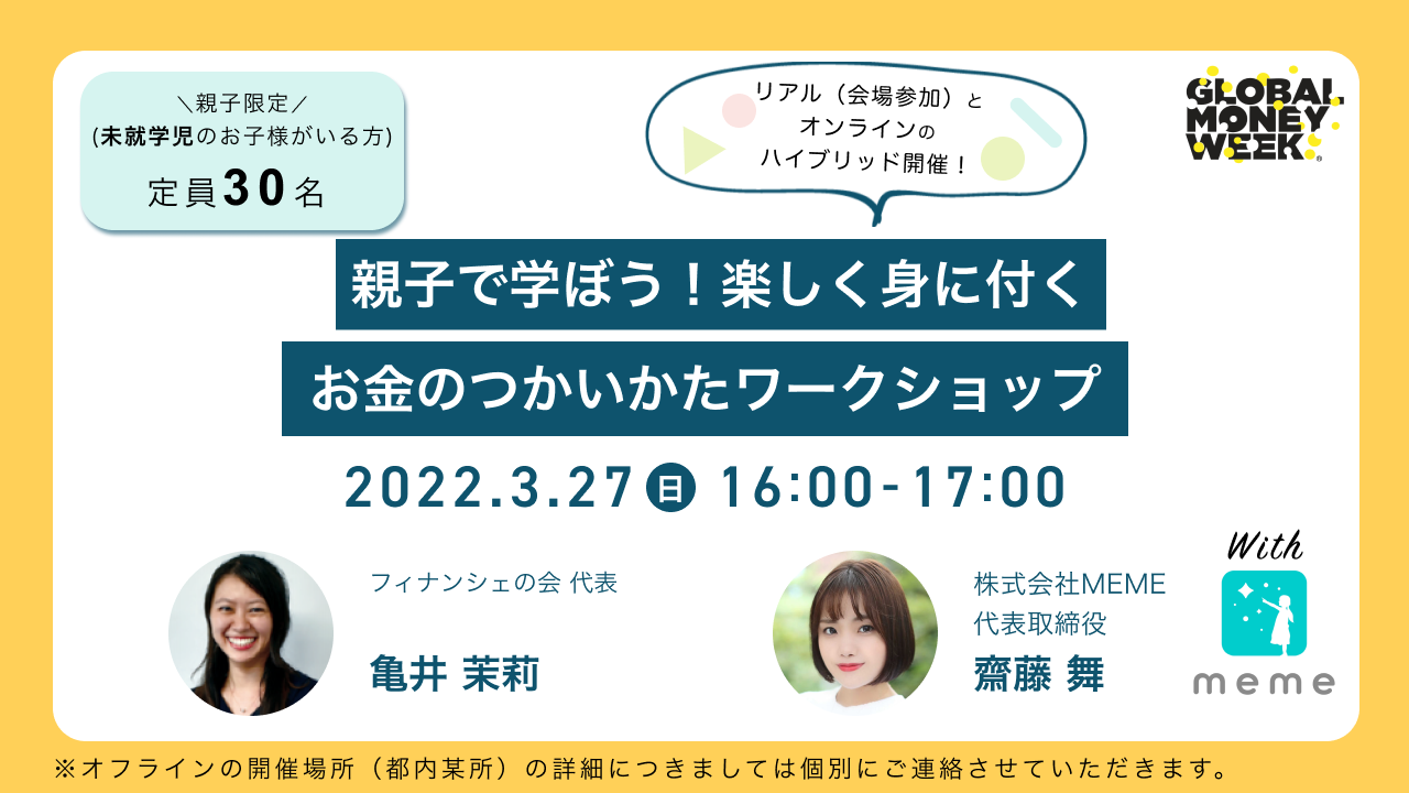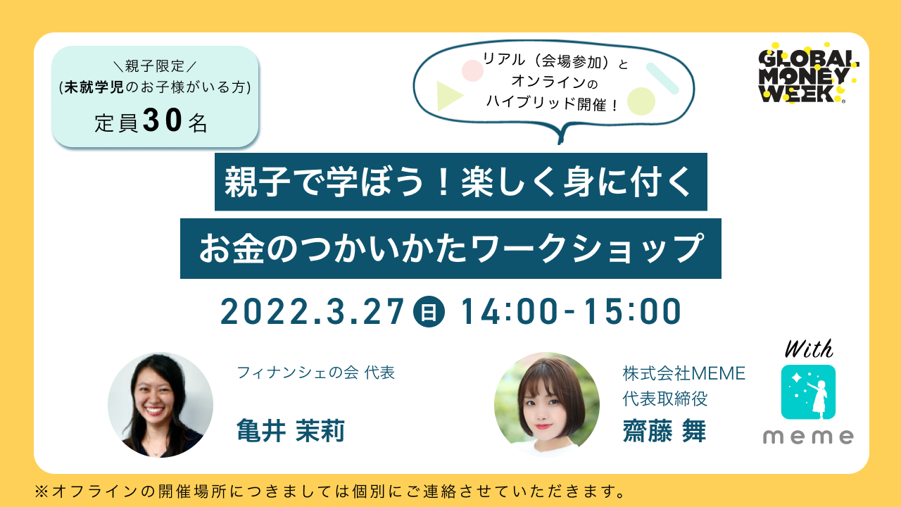 親子で学ぼう!楽しく身に付くお金のつかいかたワークショップwith MEME