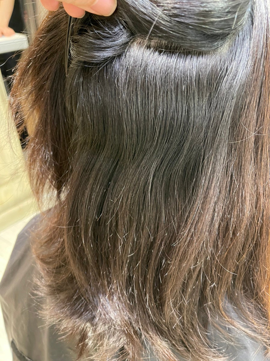 1回目の酸性ストレートでゴム跡が取れ、3〜6ヶ月後に2回目の酸性ストレートをすれば根本の曲がりが取れていきます。