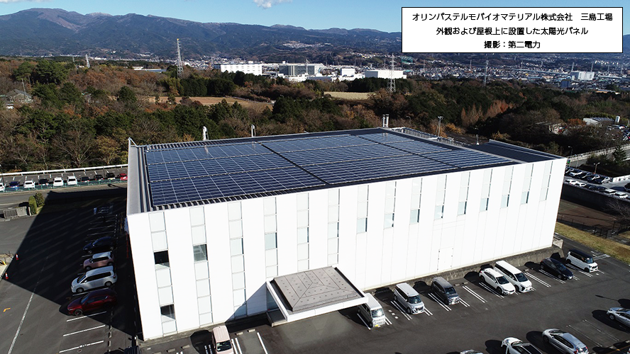 今回、第二電力が太陽光発電設備を導入したオリンパステルモバイオマテリアル株式会社様はセラミックス人工骨・コラーゲンなどの生体材料および再生医療に関する研究開発、ならびに製造販売を事業として取り組んでおられます。今回の導入は生産拠点である三島工場となり、オリンパスグループとしては国内初のPPAによる太陽光発電導入となります。