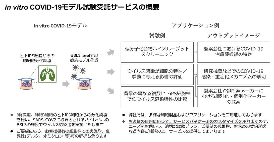 新型コロナウイルス感染症等に対するヒトiPS細胞由来の肺細胞を用いた「呼吸器感染モデル(薬効評価)試験受託サービス」を開始