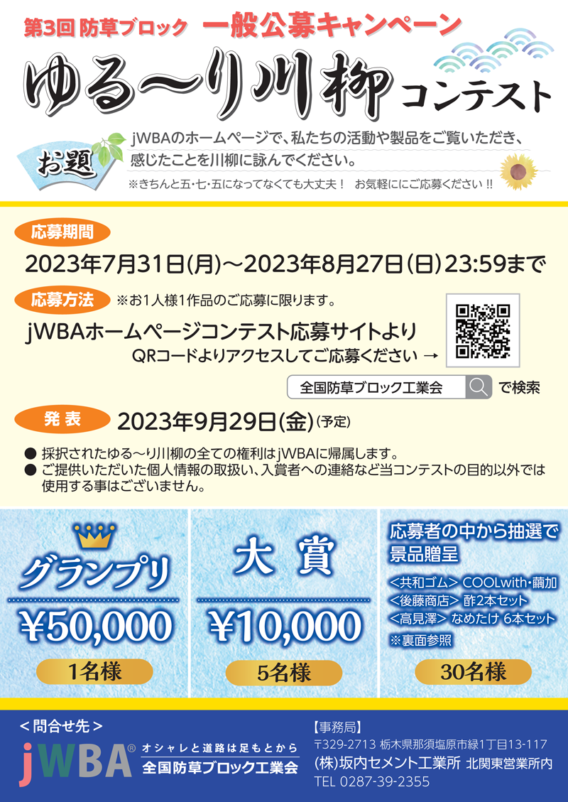 jWBA第3回一般公募キャンペーン「ゆる~り川柳」コンテスト