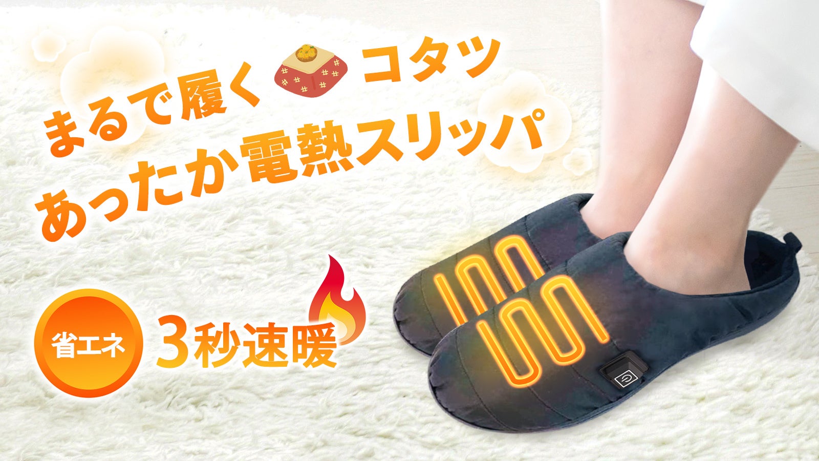 冷たい足先が3秒で速暖【ヒーター内蔵式あったか電熱スリッパ】12月9日から先行販売開始