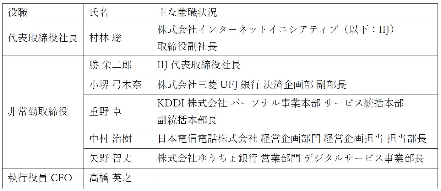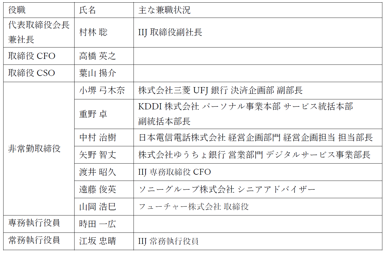 同年4月1日に開催する取締役会を経て、新役員体制は以下となる予定です。