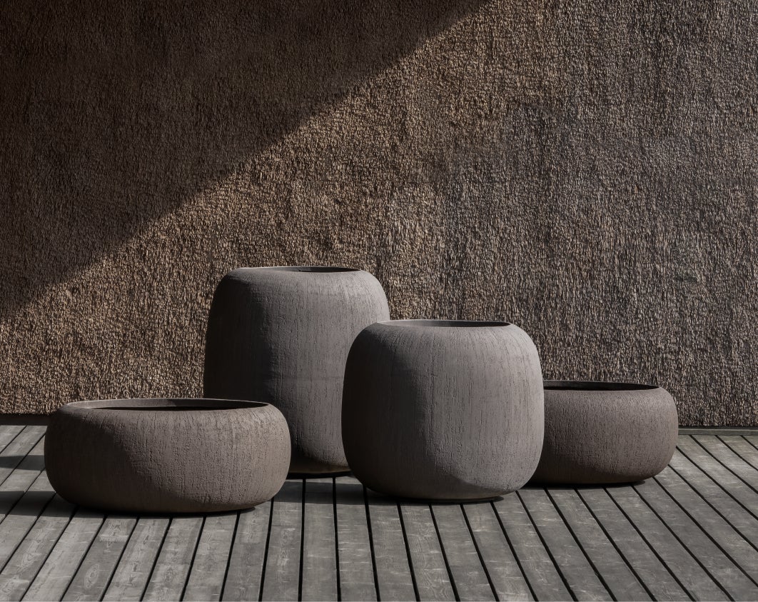 緩やかにカーブを描く有機的なフォルム、思わず触れたくなるようなしっとりとした手触り、繊細なニュアンスカラー……。五感に訴えかける「MELIDES」のデザインを手掛けるのは、世界中で活躍するベルギーの建築家、Vincent Van Duysenです。彼は自然でシンプルなデザインを直感的に思い描き、内側にカーブするラインや表面の繊細なテクスチャーを完璧なものにするため、DOMANIの職人と一体になりながら試行錯誤を繰り返しました。繊細でありながらも堅牢で、どこかエレガントなプランターは、さまざまな空間になじみながら、存在感を放ちます。