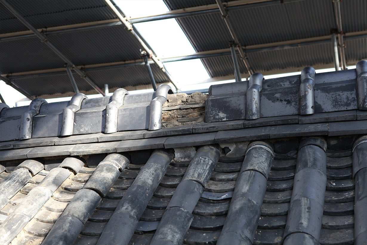 そんな矢先、令和3年8月に降り続いた雨の影響で、東の蔵の屋根の一部が崩落してしまいました。