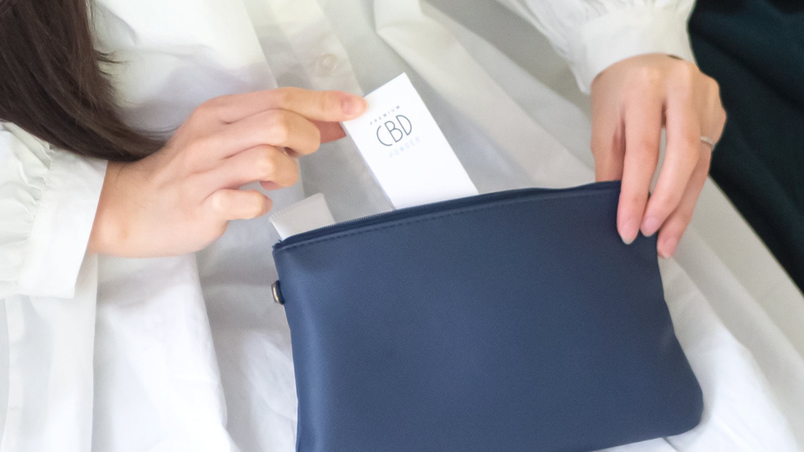 MakuakeでCBD水溶性パウダーをご購入の方には、収納ポーチを全員プレゼント。CBD水溶性パウダーを入れたり、CBDオイルを入れたり、使い方は色々。