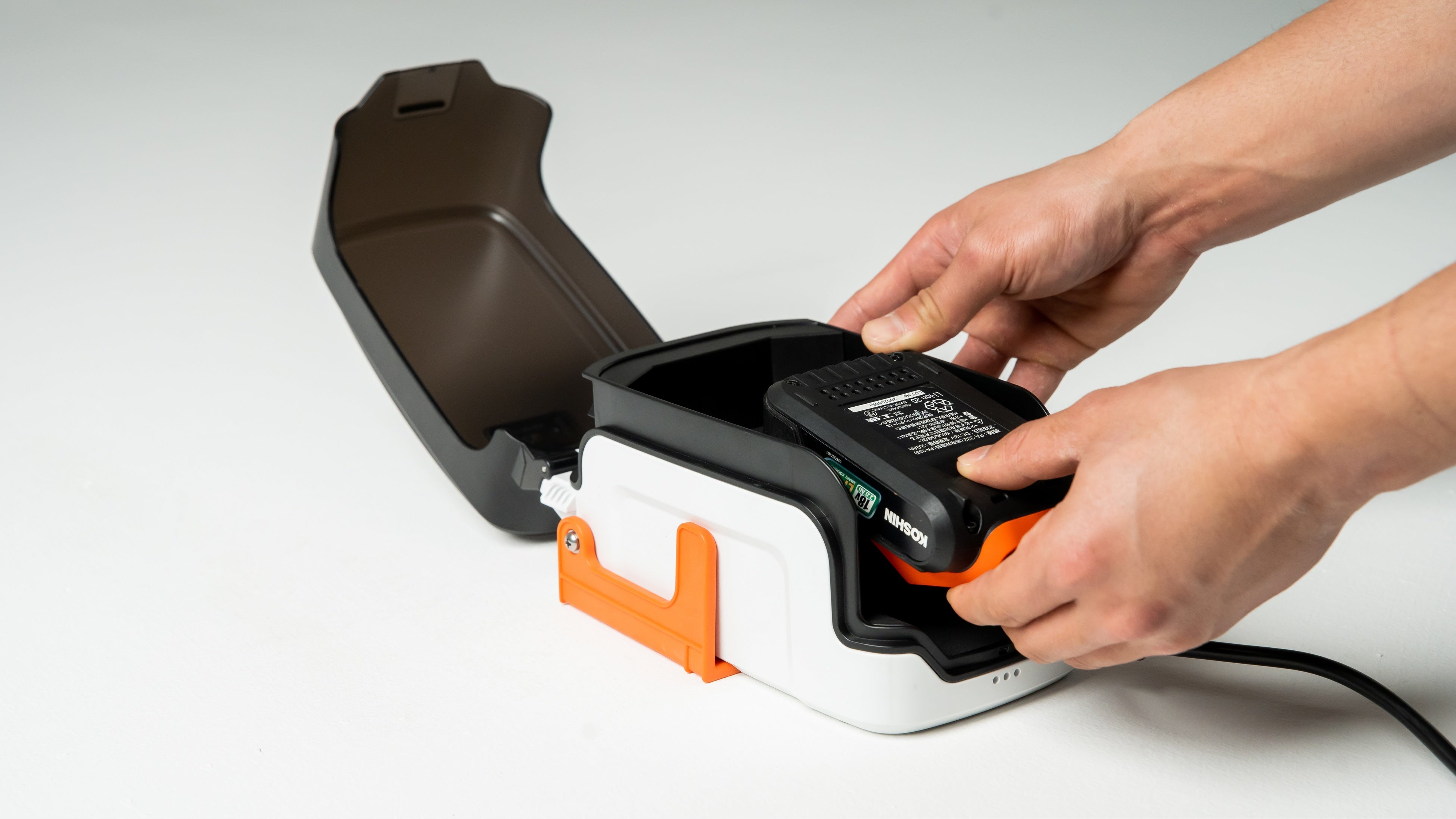 1分間に最大30ℓ、バッテリー満充電で約30分間運転が可能