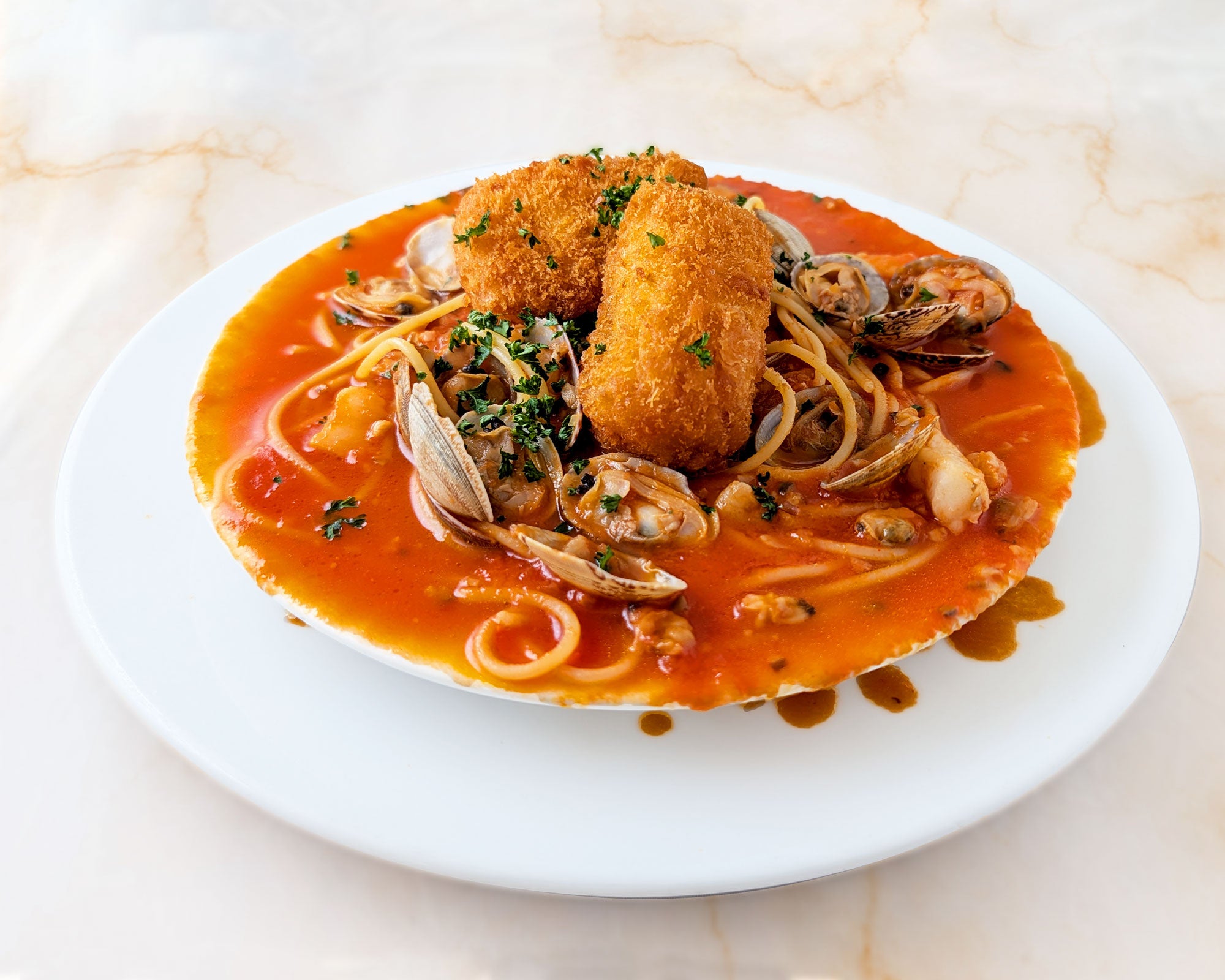 ・海の幸と蟹クリームコロッケのトマトスープ 1,628円