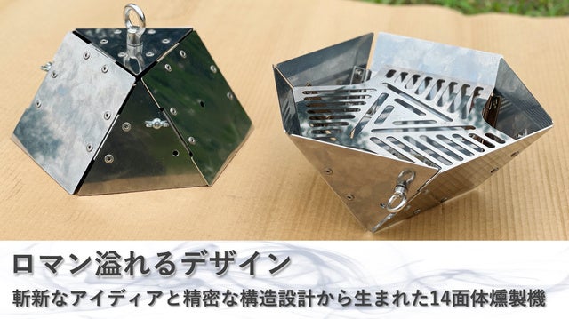 - 「ロマン溢れるデザイン」斬新なアイディアと精密な構造設計から生まれた14面体燻製機!