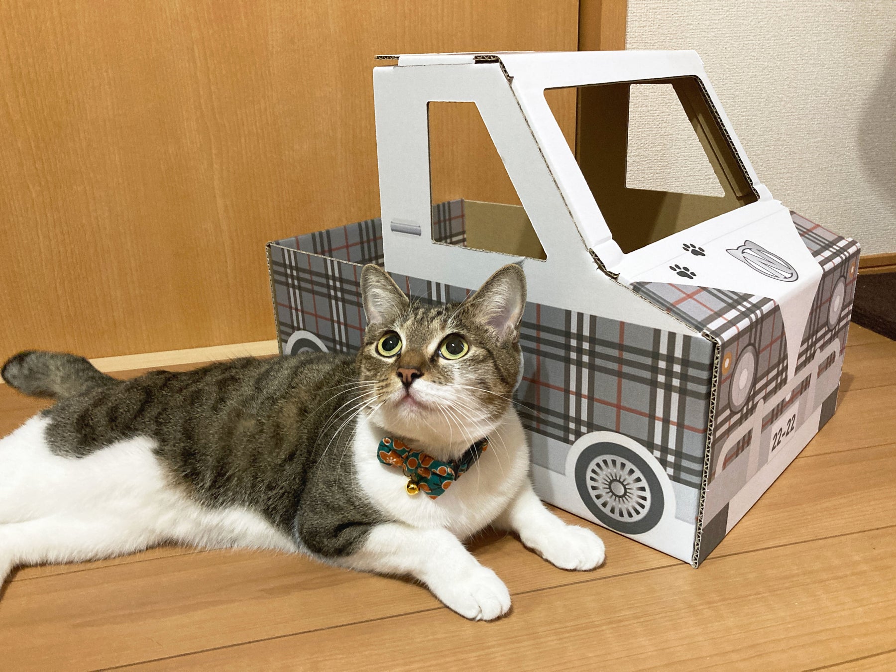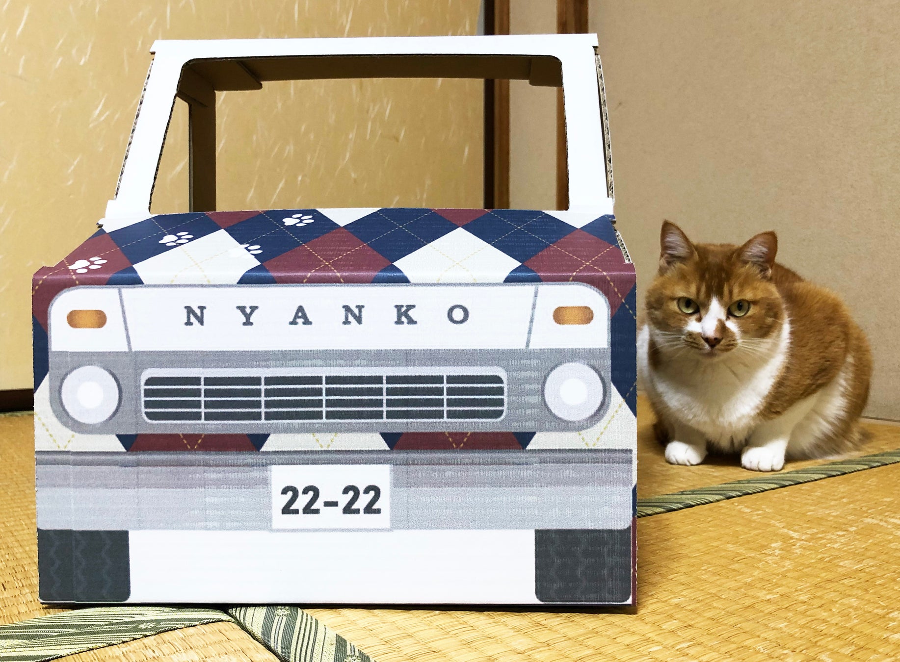 ▼ダンボール製 ねこ専用トラック(アーガイル柄)