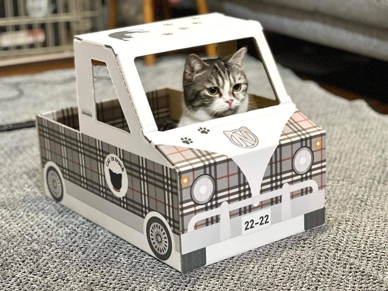 ▼ダンボール製 ねこ専用トラック(タータンチェック柄)
