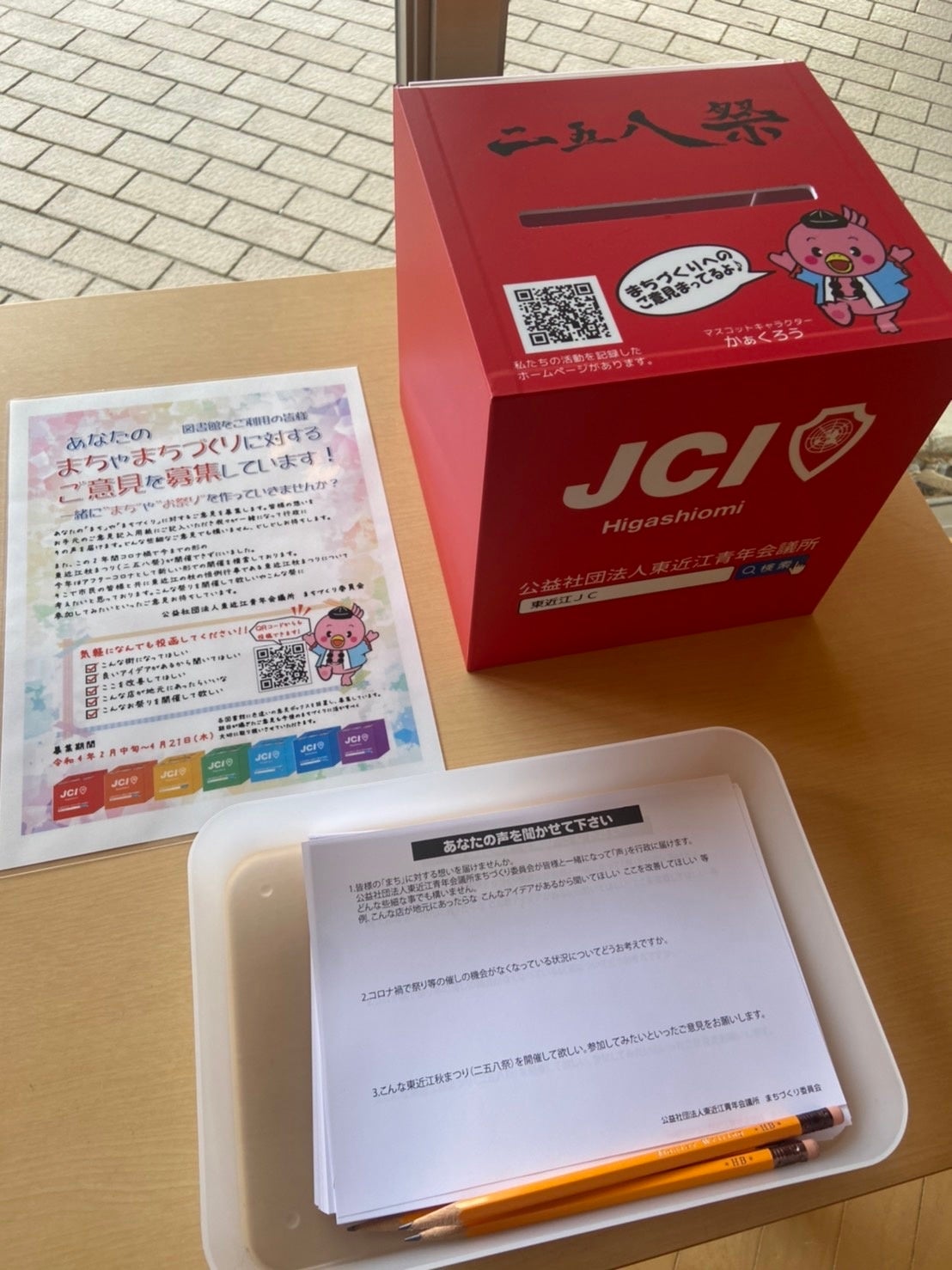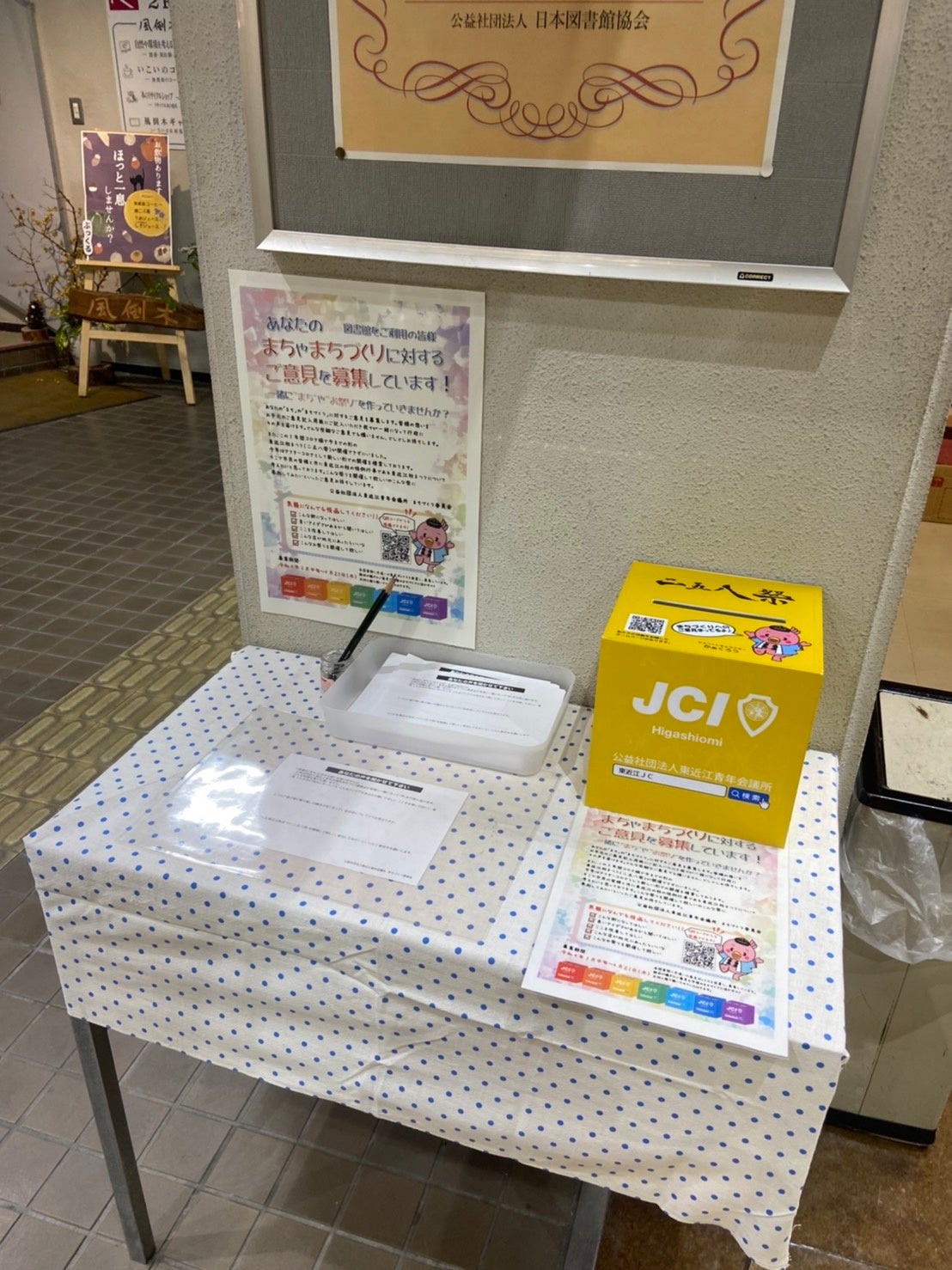 公益社団法人東近江青年会議所がまちづくり事業の一つとして市内7カ所の図書館に意見ボックスを設置し、市民の皆様に「まちづくり」へのご意見を募集します。