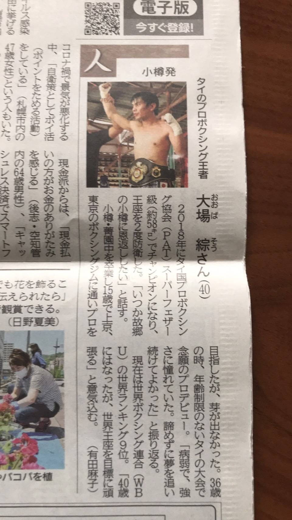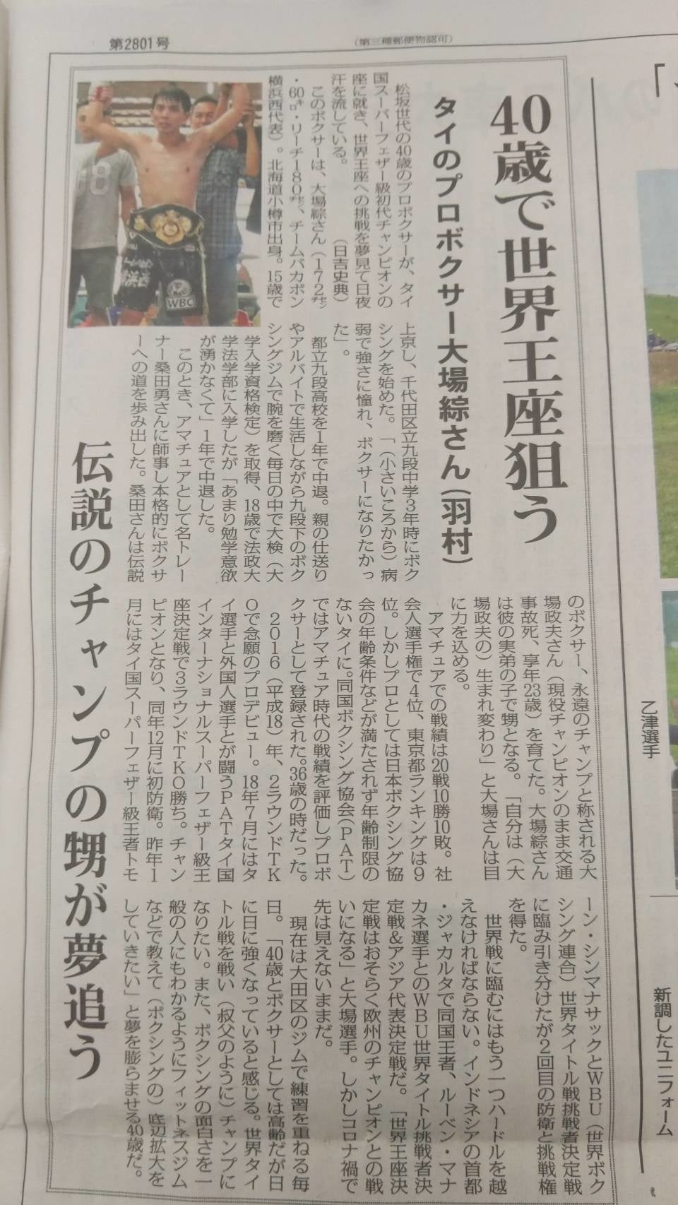 伝説の世界王者・大場政夫の甥、松坂世代42歳(小樽で出生、羽村在住、横須賀市観光協会会員)タイ国王者・大場綜、日本人初のWBU世界王座挑戦に向けて世界ランキング四位に