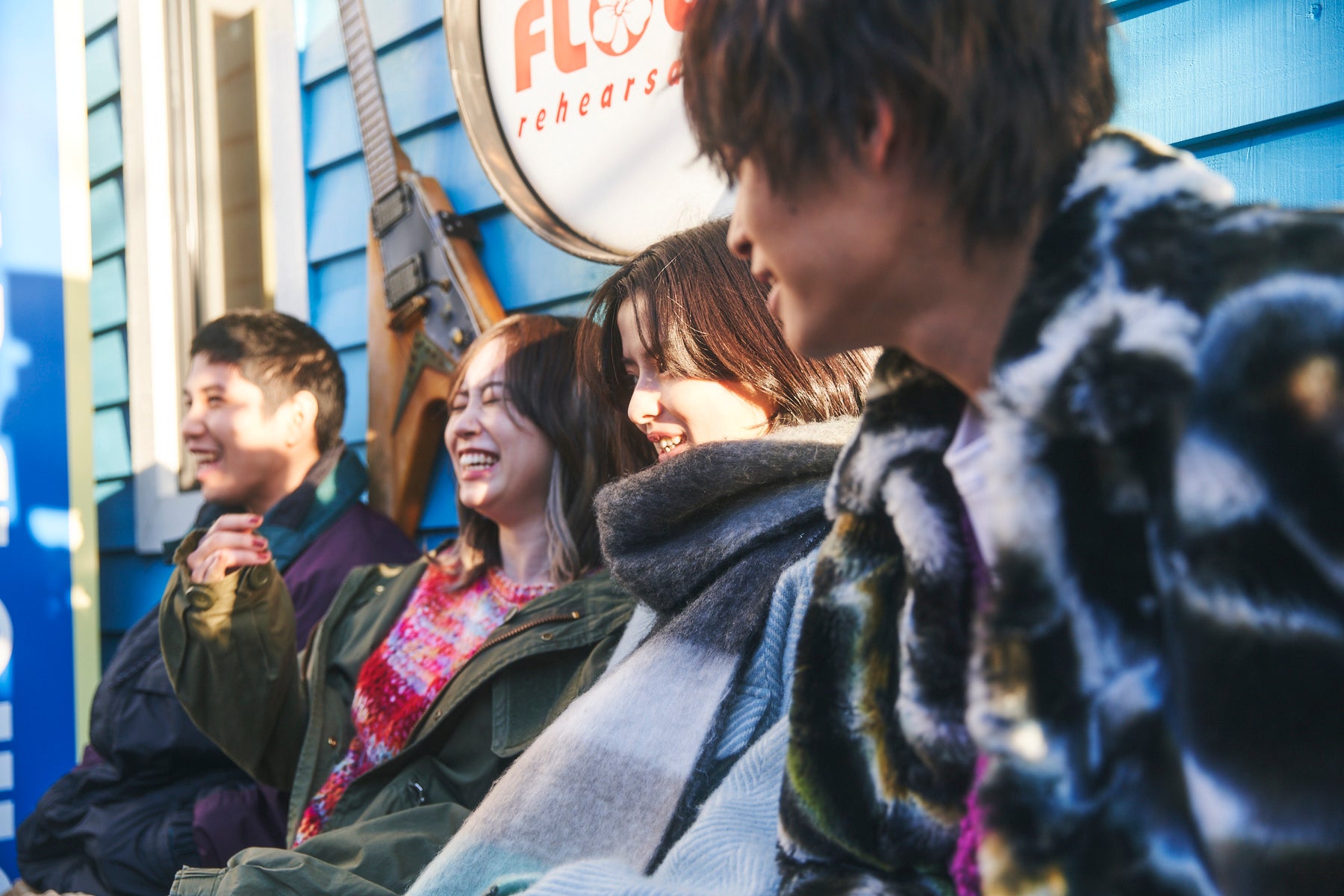 さらに、作中では主人公4人でバンド演奏をするシーンが多く登場しますが、撮影当初の出演者4人はほぼ演奏経験のない楽器初心者でした。登場人物に入り込むため、音が合わさるときの嬉しさや、上手く演奏できないときの悔しさ、バンドとして演奏する楽しさなどを表現する“リアルなバンドマン“を演じるために撮影の合間を縫い、ときには個人で、ときにはみんなで集まって、本当のバンドのように楽器を練習してきました。