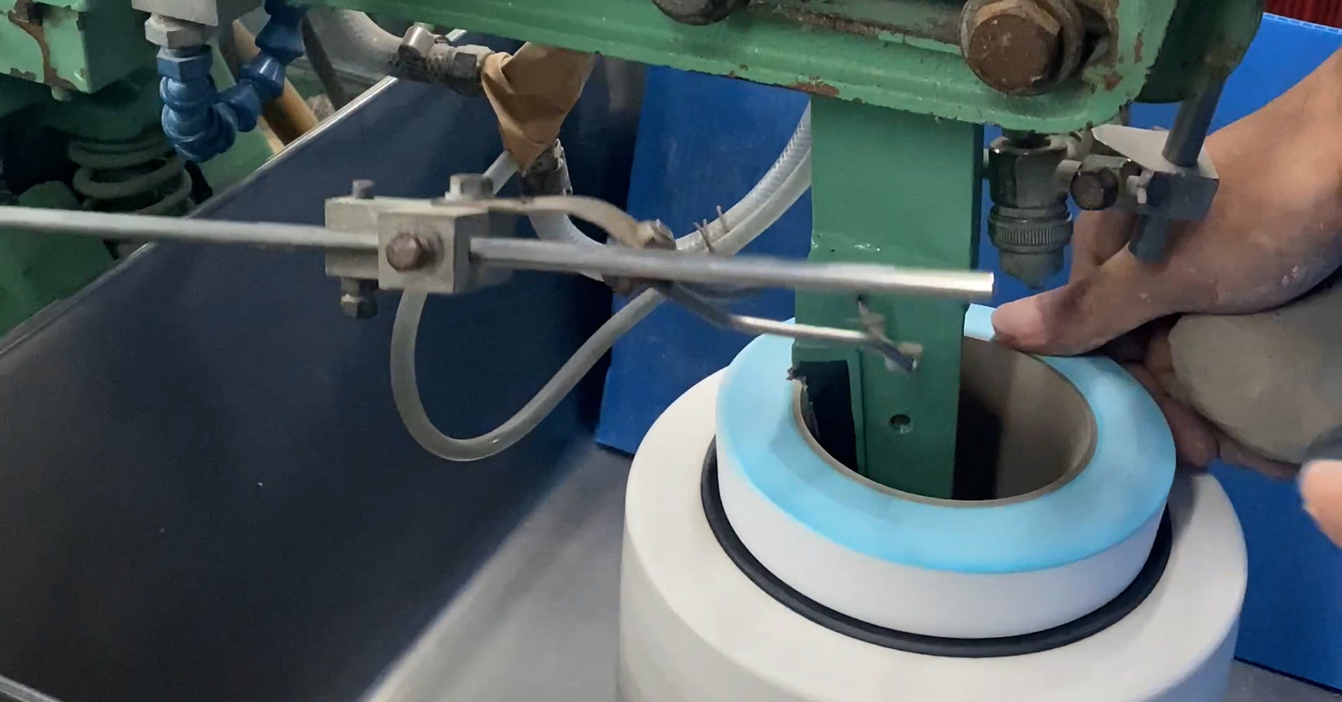 crunchの本体は「水ゴテ成形」という製法を採用しています。水ゴテ成形とは鉄製のコテと石膏型を用いた手作業であり、人力成形のため機械よりも圧力がかからず歪みやすいのが特徴です。そんな難しい製法でも土の調整や職人の技術が加わることで、独特の美しい“ゆらぎ”を生み出すことができます。