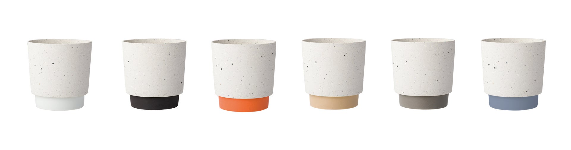 受け皿のカラーは白/スミ黒/オレンジ/ベージュ/グレー/ブルーの6色。中に入れる植物や部屋の雰囲気に合わせて色を選ぶことができます。