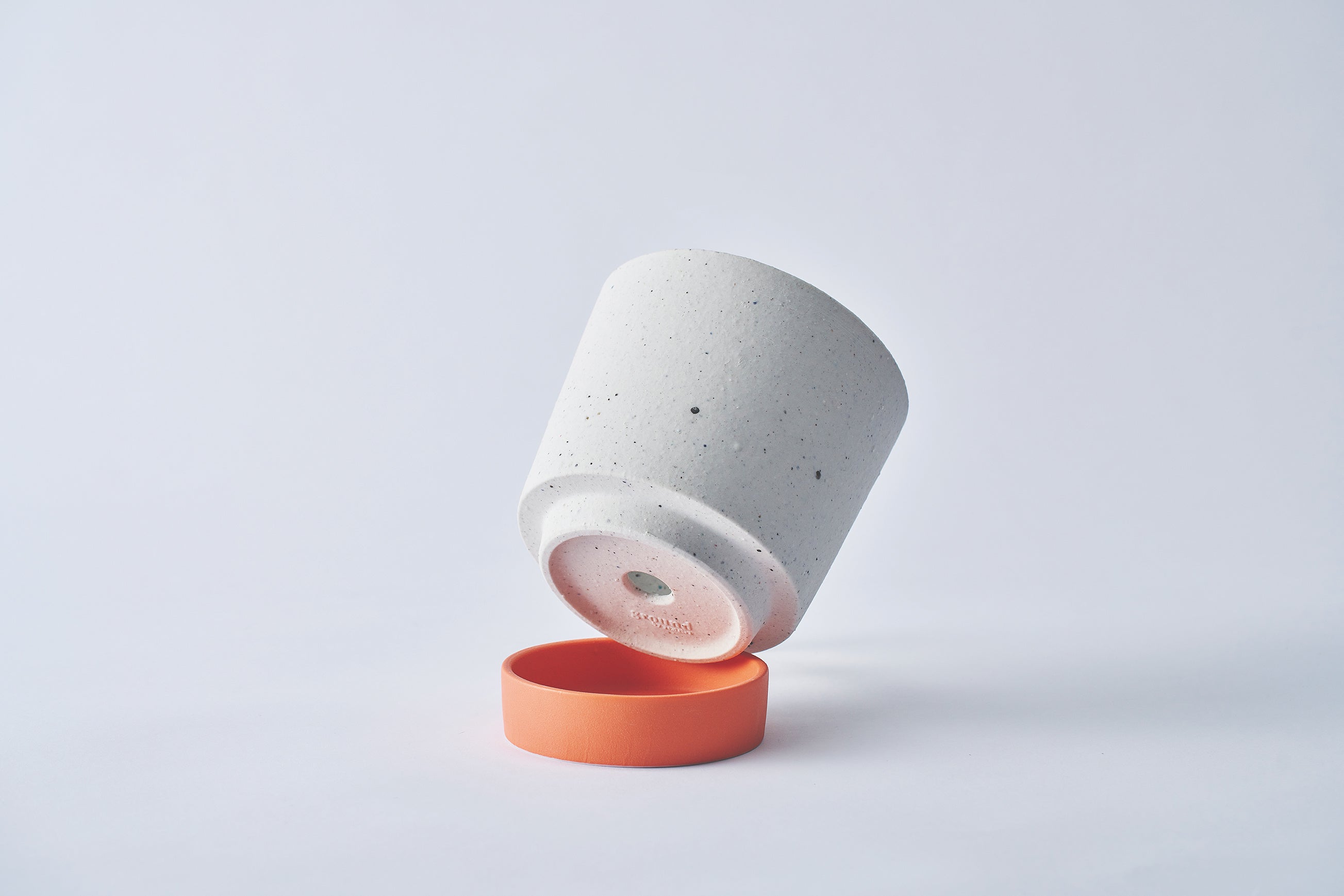 本体と受け皿で一つのプロダクトとしてデザインされています。別で受け皿を買い揃える必要がなく、季節問わず屋内外で植物との暮らしを楽しんでいただけます。