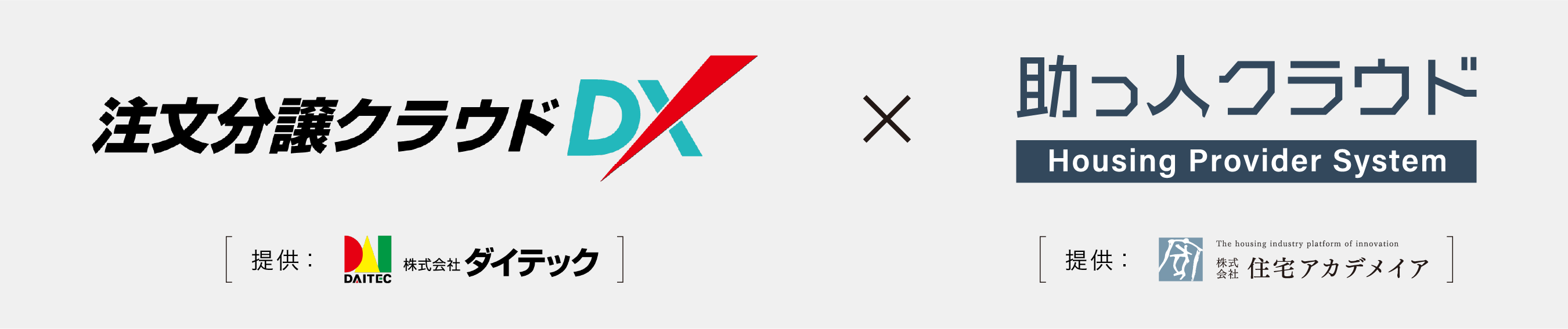 石油販売業向けPOSシステム及び建築設備業向けCADソフトウェア開発販売において業界トップシェアの株式会社ダイテック(本社:東京都中央区、代表取締役社長:野村 明憲、以下「ダイテック」)と、住宅金融事業を行う日本モーゲージサービス株式会社(以下「日本モーゲージサービス」)の連結子会社で、住宅保証サービス及びICTシステムプラットフォームの提供を行う株式会社住宅アカデメイア(本社:東京都港区、代表取締役社長:楳野 範生、以下「住宅アカデメイア」)は、このたびダイテックが提供する「注文分譲クラウドDX」と住宅アカデメイアが提供する「助っ人クラウド」のプロダクト連携を開始し、ユーザーとなる住宅事業者の更なる業務効率化とDX化を推進していくこととなりましたので、お知らせいたします。