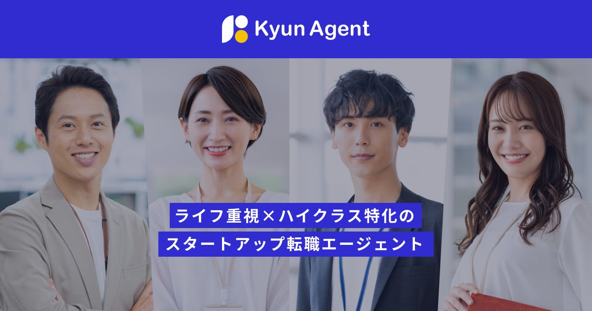 『Kyun Agent』は、ライフ重視×ハイクラス人材に特化したスタートアップ転職エージェントです。仕事もプライベートもトレードオフではなく、AND思考でもっと幸せに生きたいハイクラス人材に対し、長い人生を充実したものにする生き方の戦略づくり、先天的な才能・才覚と理想の在り方(Being)とをつなぐキャリア支援やライフプランニング、厳選したスタートアップ企業のご紹介をいたします。