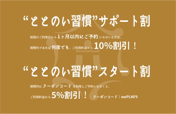 ※「”ととのい習慣”サポート割」実施期間内であれば本割引は何度でもご利用可能です。