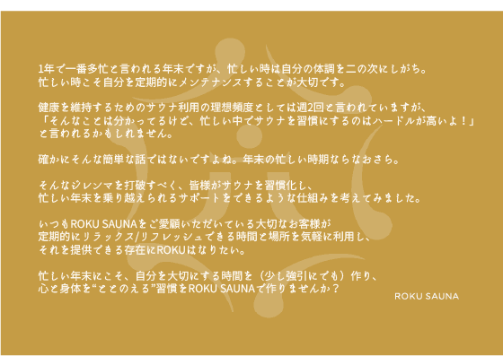 「”ととのい習慣”サポート割」はROKU SAUNAのリピーター様の方に向け、