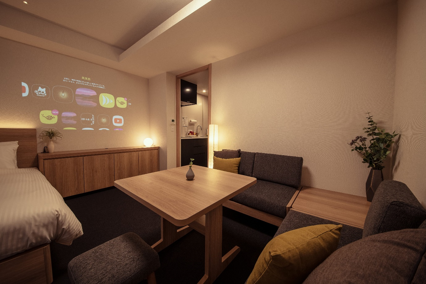 東京・大阪・京都の3エリアに展開する各施設でも照明一体型プロジェクターを完備したシアタールームやプロジェクター付きプラン、ストリーミングデバイスの貸し出しなど推し活を楽しめるアイテムを多数ご用意しています。キッチンや調理器具から、ランドリーまで備えた広々としたくつろぎ空間で、友人との推し活を是非お楽しみください。