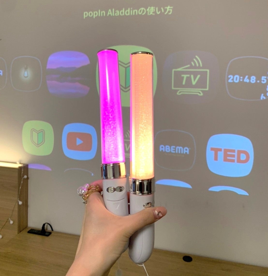 誕生日会だけでなく、オンラインライブやDVD鑑賞会にもご利用いただけるように、プロジェクター、ペンライトも完備しています。