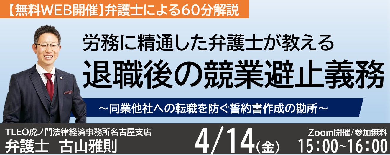 「退職後の競業避止義務 ~同業他社への転職を防ぐ誓約書作成の勘所~」セミナー
