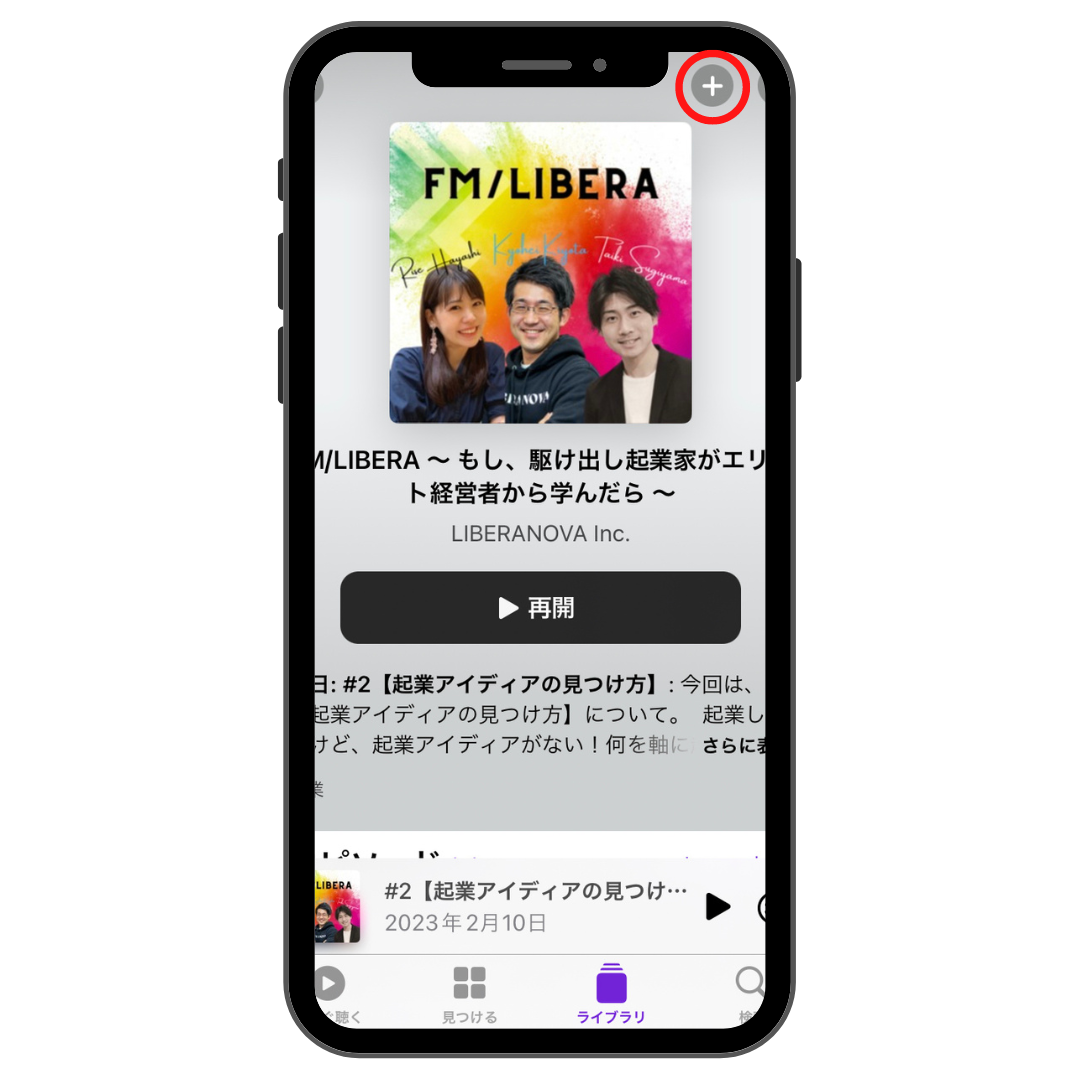 - 「サブスクリプションに登録」をタップして登録しておくと、「ライブラリ」からいつでも簡単にアクセスができるようになります。また、新着エピソードのお知らせをプッシュ通知で受け取ることができるようになります。エピソードの右上にある「+」ボタンをタップしておくとエピソードの新着通知が届きます。