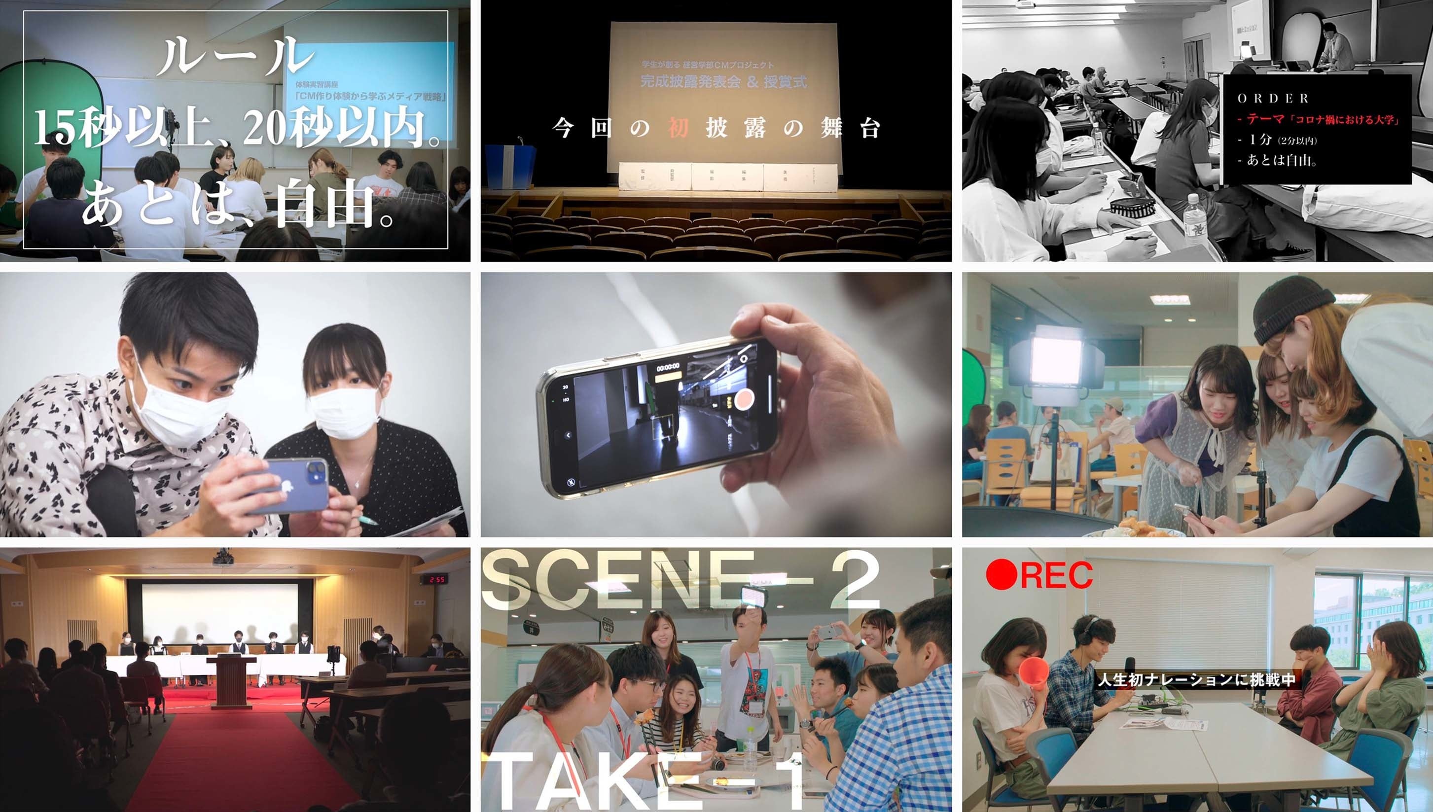 『普段何気なく見ているCMですが、そこには多くのプロが関わり、チームで考え抜かれたアイデアと挑戦が詰まっています。今や動画広告など1日何度も目にするCMですが、一生のうちにCMを作る人は何人いるでしょうか。 CMは一度でも作った人だけが味わえる景色があります。その後のCMの見方が変わり全てが学びに変わります。それは全学部、また社会に出ても活かせる学びでありスキルだと思います。就活もオンライン化が進み、今後ますます動画コミュ力も試されるZ世代に、ぜひ現代を生きる武器としての経験になればと思い企画しました』