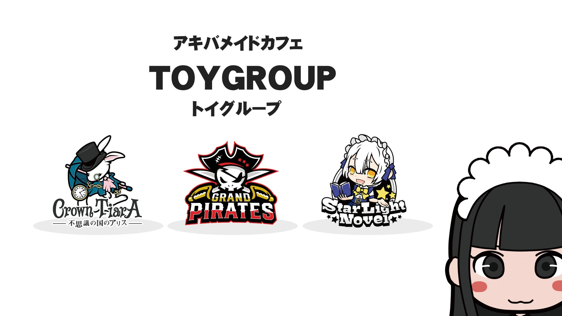 トイグループは秋葉原を中心に複数のメイド喫茶(コンカフェ)を運営しています。グループ店舗の「クラウンティアラ」は不思議の国を、「グランドパイレーツ」は海賊を、「スターライトノベル」はお星様を、コンセプトにしています。