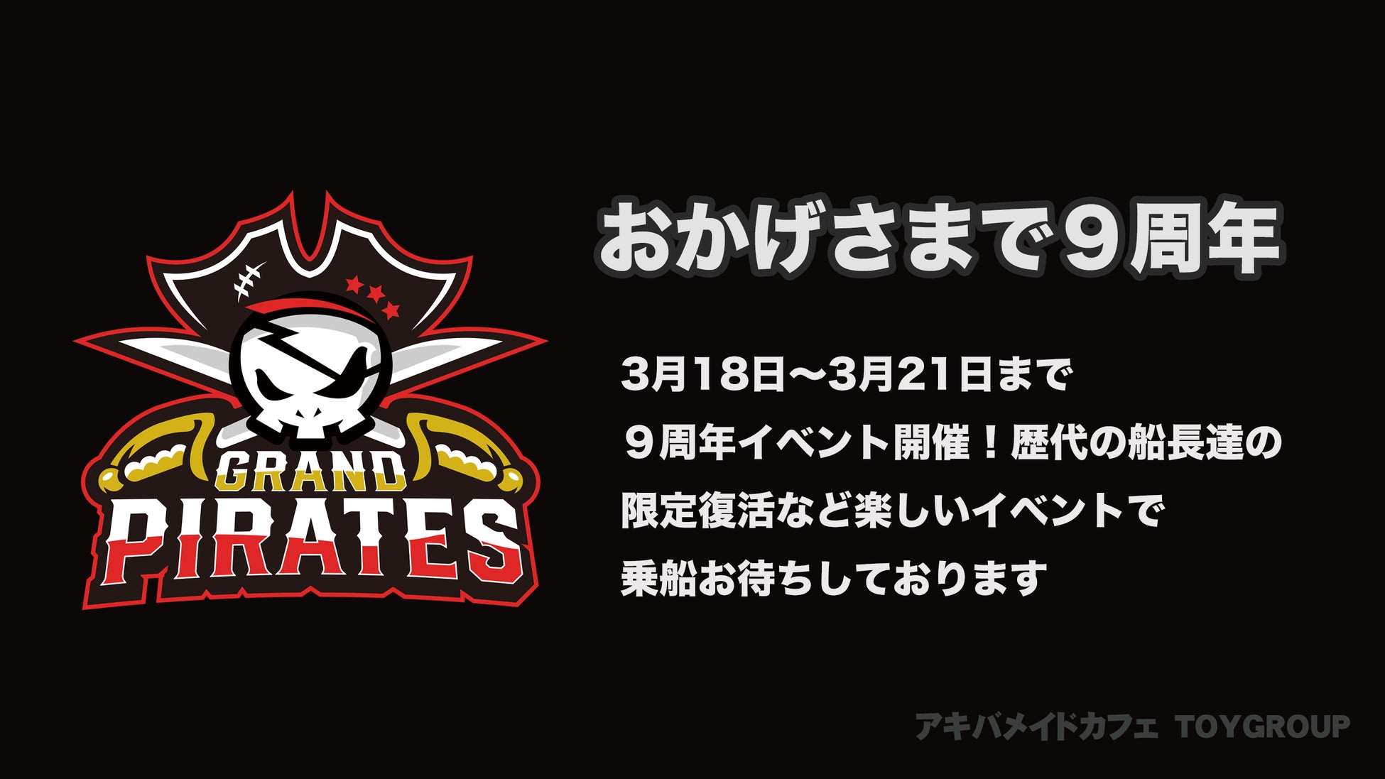 【秋葉原×アキバメイドカフェ】海賊メイドカフェ GrandPirates(グランドパイレーツ)が2022年3月9周年を迎えることができました。9周年イベントは3月18日から