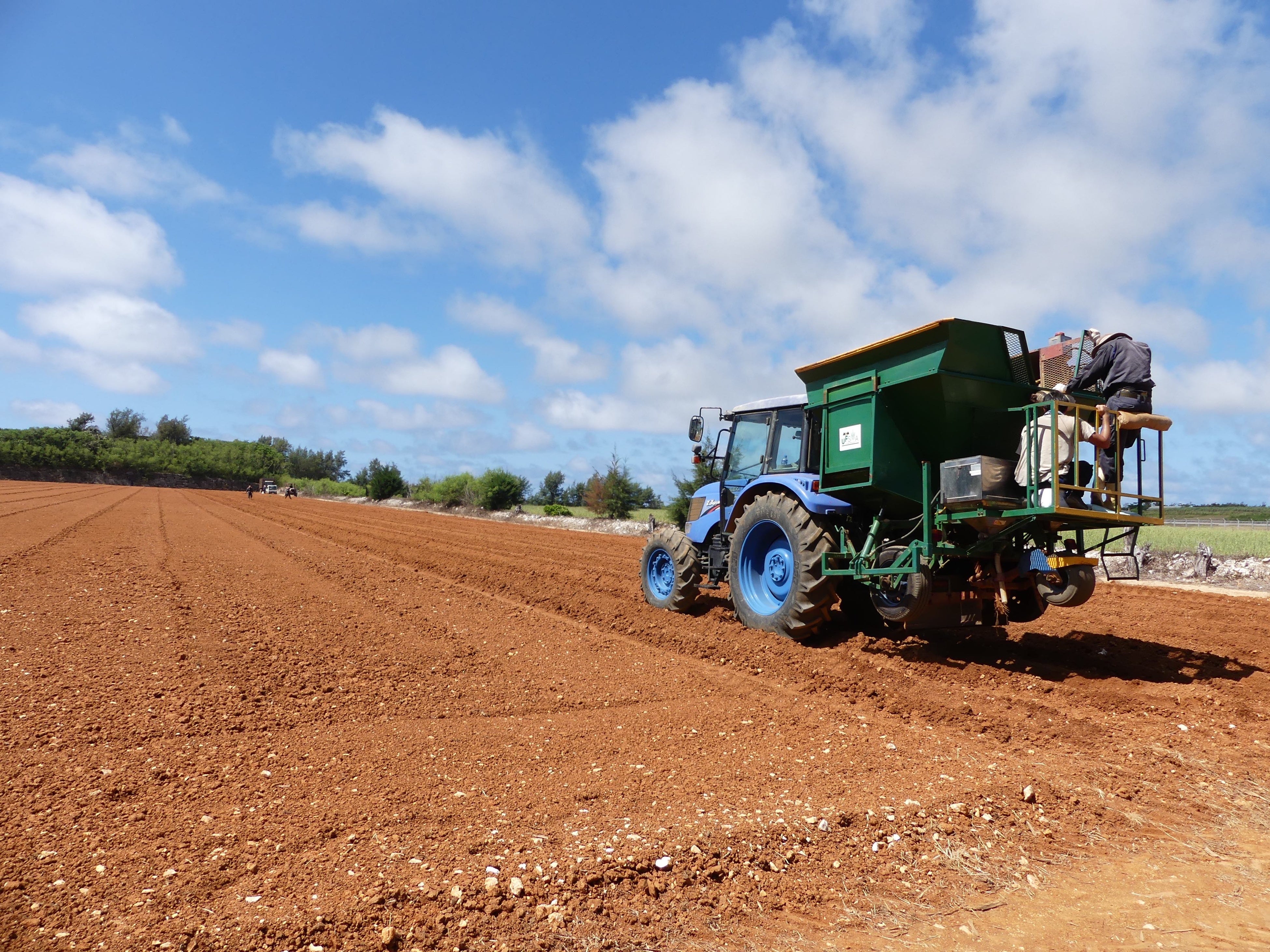 南大東地域の農家の支援を行う、アグリサポート南大東(株)の協力のもと、島内の約1.2 haの農地にて、EFポリマーを使ったサトウキビ育成に対する効果実証を行います。本日植え付けを行ったサトウキビは、2024年の年末から翌年の年初にかけて収穫を行うまでの間、作物の高さ、茎数、直径などを途中経過として確認を行い、最終的には収穫後に収量への効果を調査します。