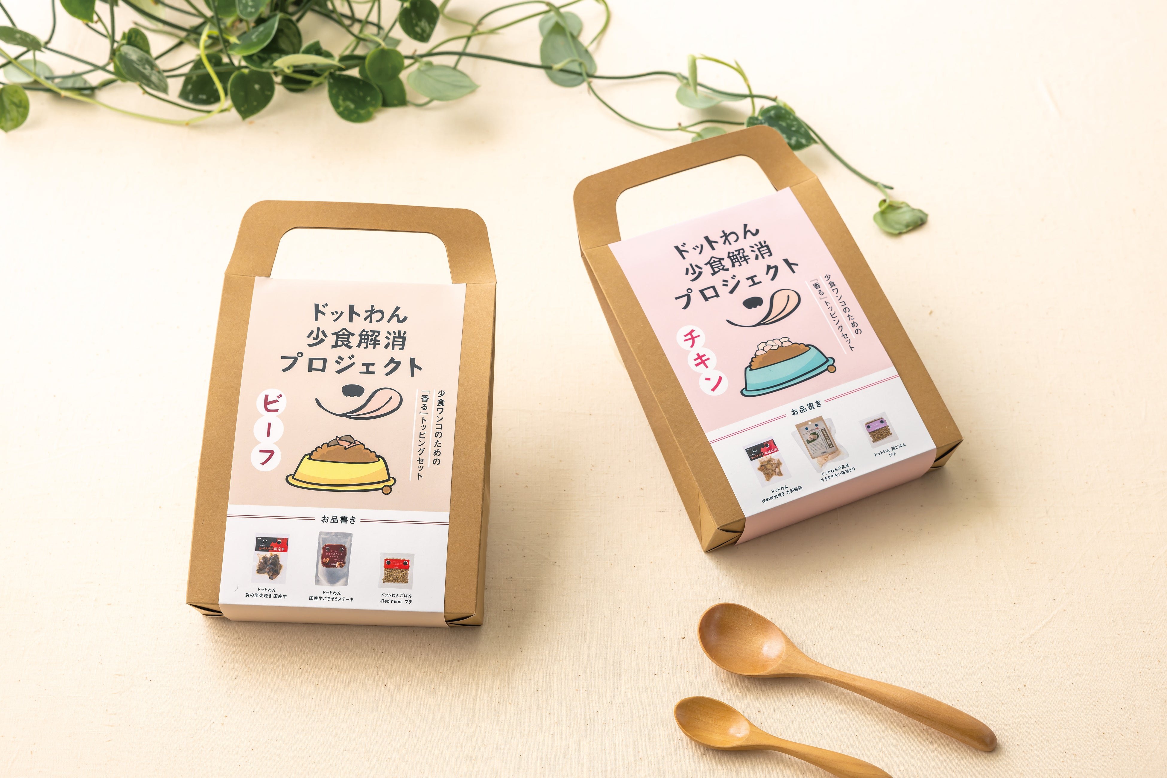 これらの商品は、ドットわんが展開するキャンペーン「ドットわん少食解消プロジェクト」の第1弾として誕生しました。食材の持つ自然な香りを活かしたフードトッピングが、少食ワンコの食べる喜びを引き出します。